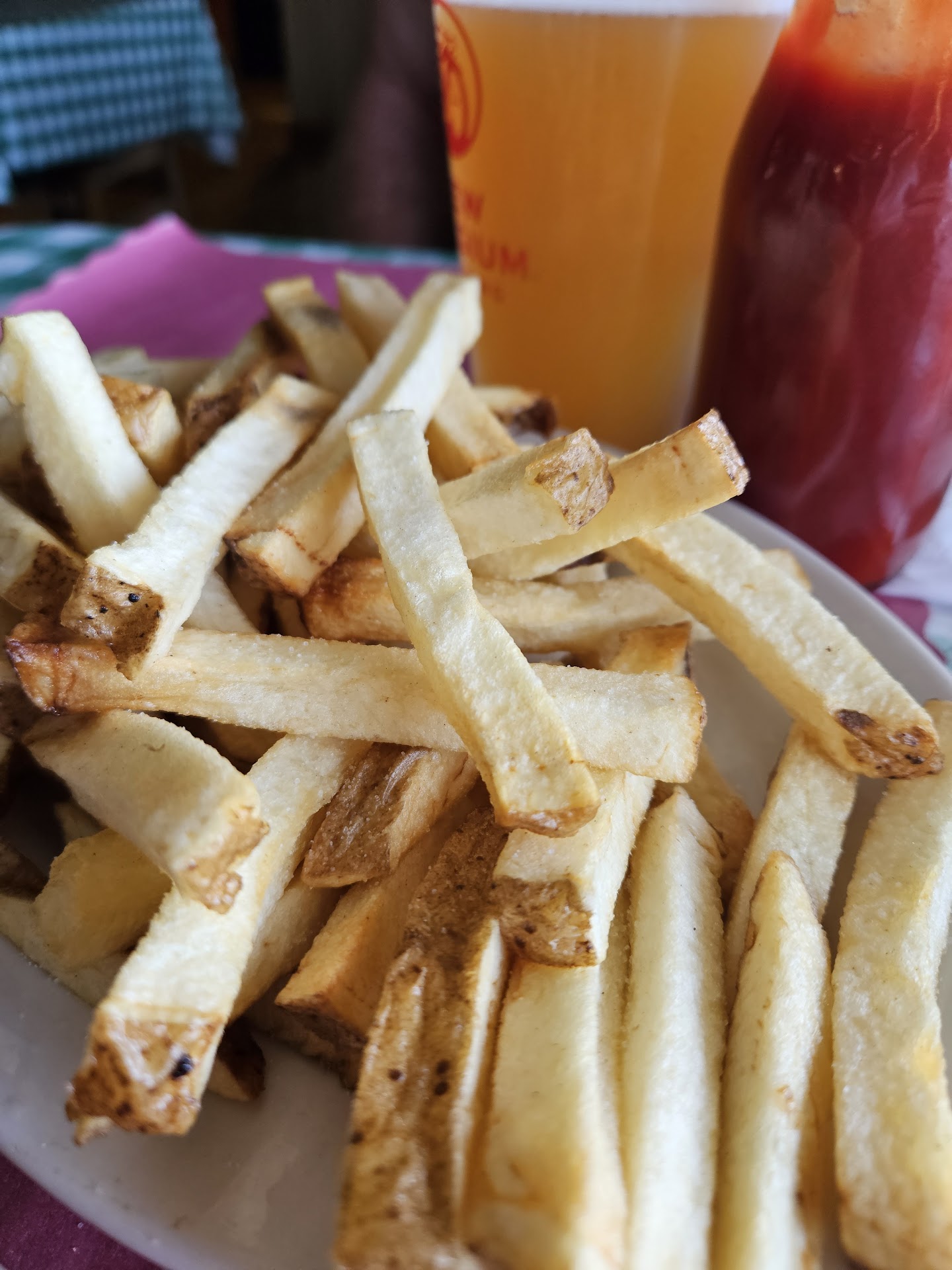 The atmosphere is awful. The brick walkway to the front door is so uneven I have no clue how they haven't been sued for someone snapping their legs. The smoking spot is touching the front door so the first thing you experience walking up is old cigarrete smell. As well as it being so hot that our group was sweating. Just walking by the kitchen it looked dirty. Also some of the glasses were dirty. The parking lot looks like several bombs went off in it.