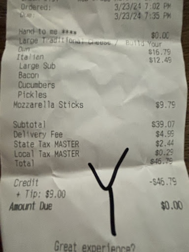 Read moreUndisclosed Fees. Ordering delivery for a $21 pizza and they throw in an undisclosed $4.99 delivery fee. They force you to pay beforehand over phone, not seeing the receipt, and never tell you about added fees. When contacting the manager Nate, he said, "Sorry, our policy is we don't have to tell you." He continued by saying, "Staff should've told me a total, so you can figure it out," which did not happened. He would not reverse the fee or allow me to speak to a higher supervisor. I realize $4.99 may not be a ton of money, but I know there are families that are struggling to make ends meet and can't afford unknown added costs, and that is why I took the time to post this review.