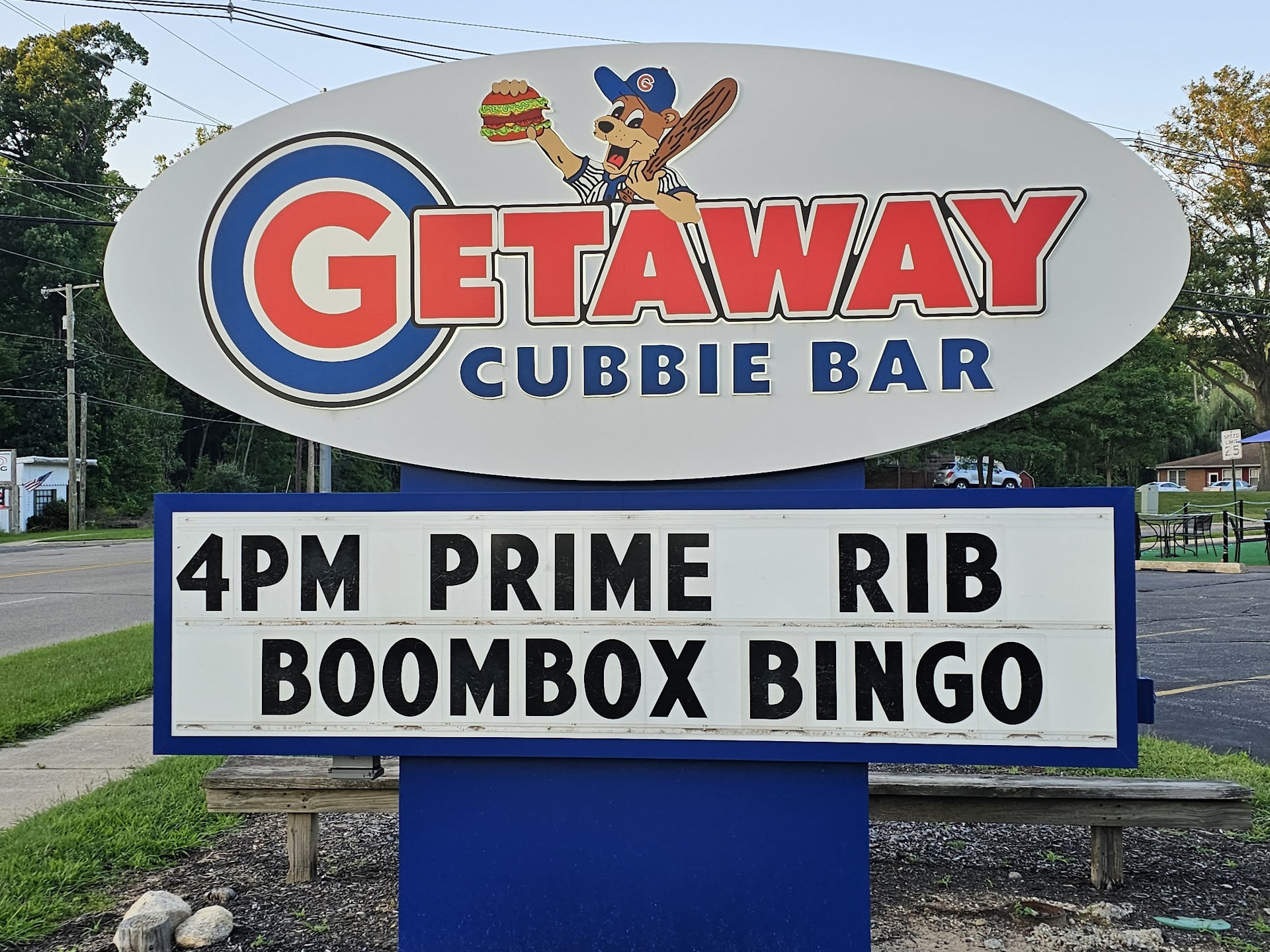 Read moreNow I’ve been to this place more than a handful of times, and I can honestly say that it is one of the best atmospheres that I’ve been in outside of Chicago when it comes to showing love for the Cubs. Aside from natural occurrences that happen inside of a bar/grill to be honestly transparent, This place is worth your time and money!! The owner Tom he is one of the most personable guys I’ve ever met and I’m happy to be a patron of this establishment especially since I’ve moved from Chicago three years ago. It’s nice to have a slice at home in Michigan the entire staff and the regulars that go there are hilarious, they treat you like family, and I’m proud to call myself a fan of Getaway Cubbie bar. I recommend going to this place for Any one of the specials that happens throughout the week and honestly, the whole menu is fire!!. I urge caution though however if you’re in a time crunch and don’t want to run into a full dining room, come early. The nightly events that go on make it so much fun to be there!! From trivia night to boom Box bingo, cornhole tournaments with a prize for the winners at the end and let’s not forget to mention the Kareoke every Friday with interchanging hosts every week. There’s literally no Kareoke around to sing and have fun and unwind a little and this place is the SPOT to get your Kareoke on!! Singing starts at 10. Saturdays are usually some sort of live entertainment. Weather permitting the bands play out on the nice patio with quite a decorative mural paying homage to some iconic Chicago, familiars i.e., Harry Carey, Ferris...