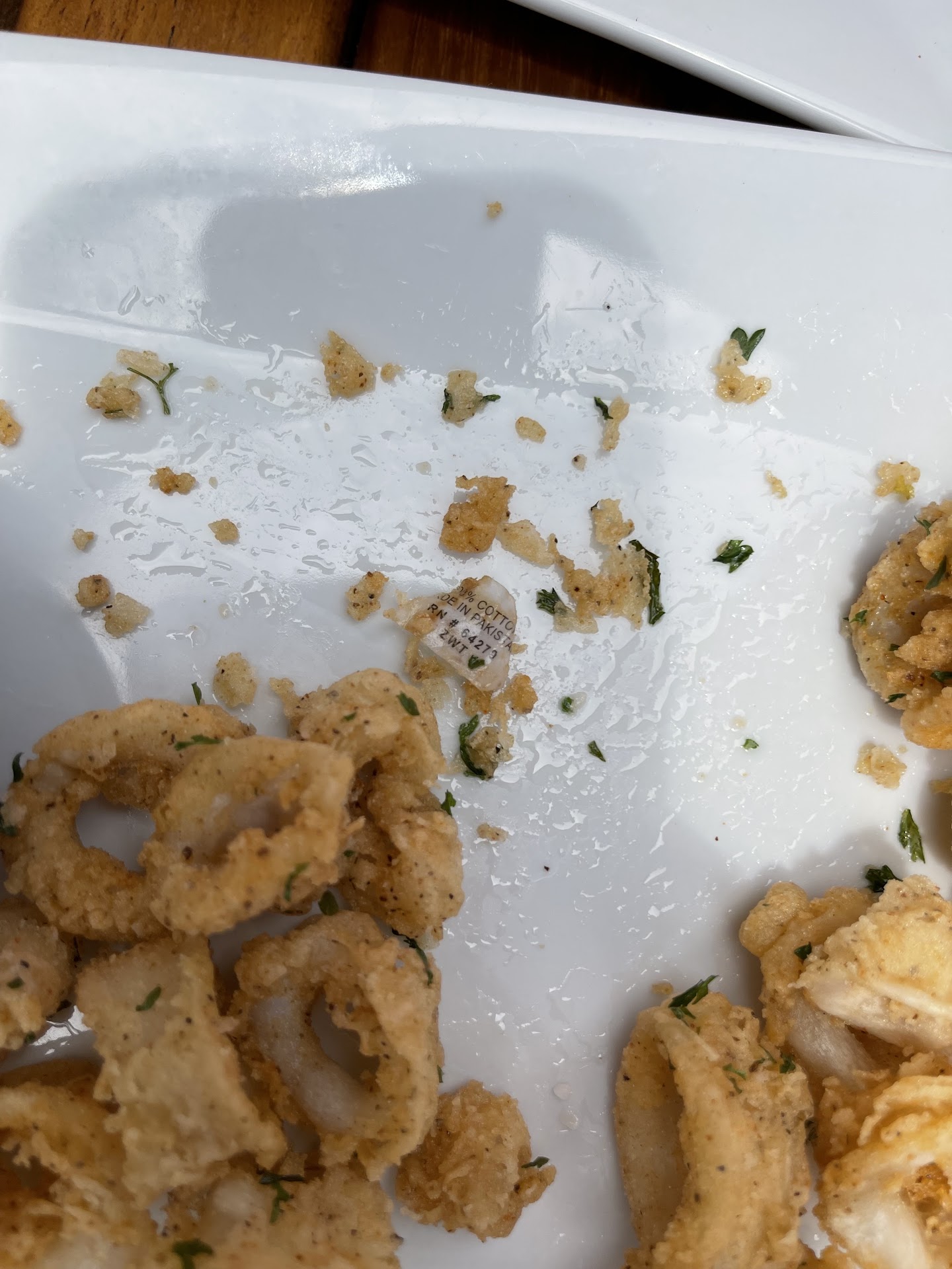 Calamari (my entree). Again, not hot, so was it just sitting in the window? Was it precooked?
