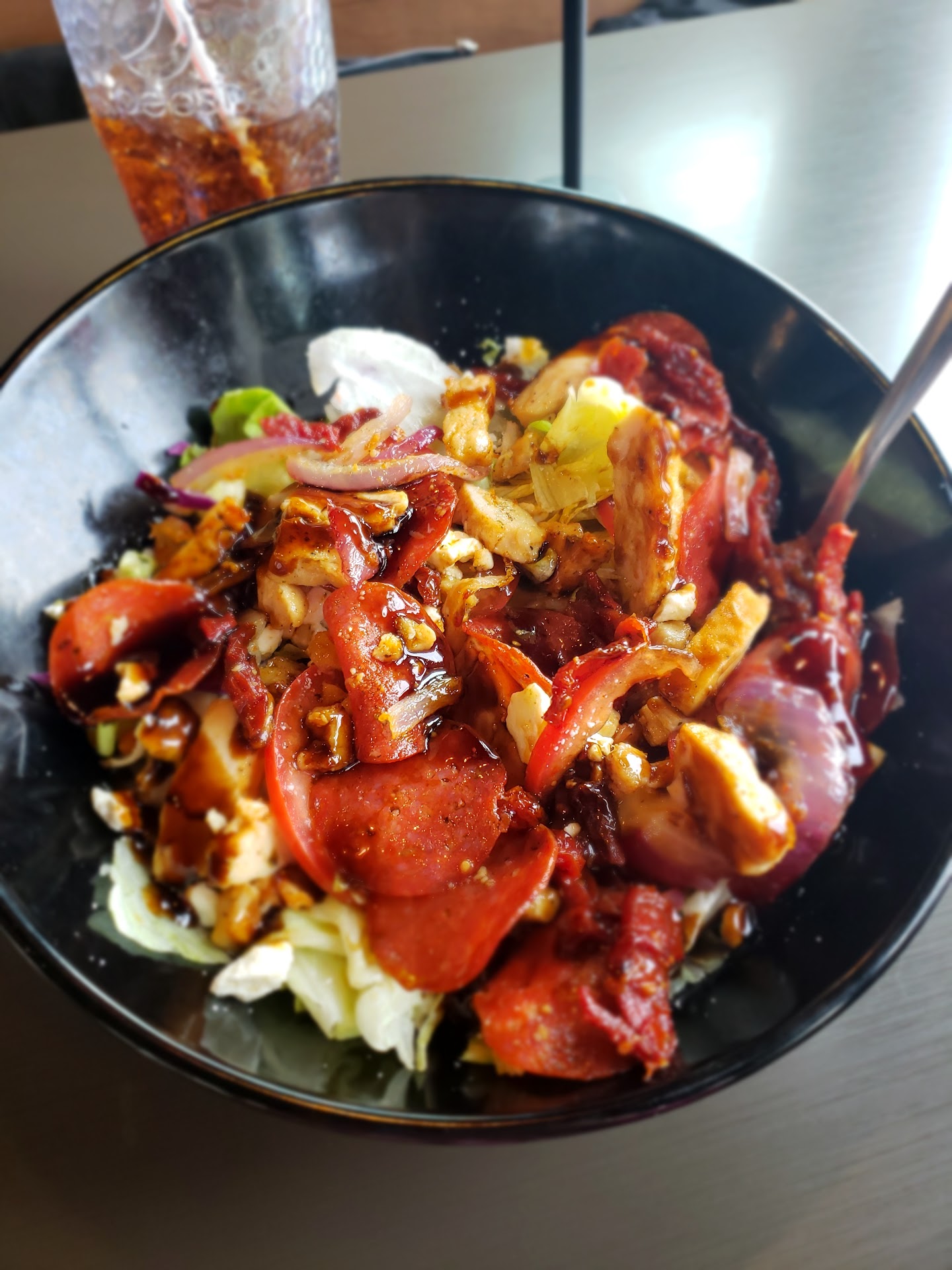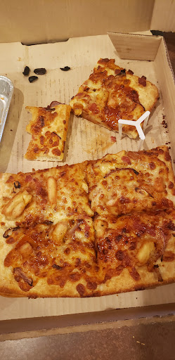Read more1st visit to the new place: online ordered, didnt have 2 of the toppings, they didnt call me to tell me, got there to pick up my order to find out they made it with out it and so they were nice enough to give me a suppose to be a 20$ credit turned into a 15$ credit. In which brings me to the 2nd visit... I called to ask how to redeem my 20$ credit they informed me it was only 15$ but would correct it so I ordered a big box dinner, was told the total was going to be 19.97 was paying cash but when delivery guy got here (which he was really awesome that's why I am giving this place 2 stars) but they didnt correct it they only gave me 15$ so I was like alright whatever, but when i opened the pizza box up and seen the bbq pizza was slab of bread with a thin layer of bbq sauce and a few pieces of chicken on it and the CHEESY bread sticks were over done, that when I figured I'd share my experience. Not sure I'll be going back especially sense the 1st time I went in to pick up my order I noticed that were tons of dirty pizza pans shoved and over stuffed all over the bottom rack falling on the floor, and a dirty mop bucket was next to the prep table. And we all have hard days I get it but damn maybe they need a little more preparation a building face lift hasn't done much for this business unfortunately. Very dissatisfied. I also understand ur food never looks like the pic but wow! Way off