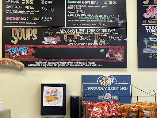 Read moreUpdate* (Updated review at end of original review) I don’t know what has happened here, but things have really changed when it comes to service. I ordered a Hells Kitchen on marble rye…what I got was a slice of pumpernickel and a slice of who knows what. Instead of them telling me that they are out of marble rye and if I would like it to be on a different type of bread, they made that choice for me. The tomato’s are almost white in color and the onions are just a couple diced onions just sprinkled on this sad excuse for what Heidi’s sandwiches used to be. I eat at home now because every time I want to sit and dine in…I have to clean the crumbs and whatever else is living on the tables and seats before I can sit down. Really disappointed with how this establishment is going the opposite direction.