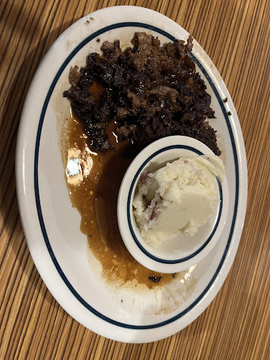 Additionally, upon arrival, I was informed that they're out of broccoli and was offered a fresh salad instead. However, when I got home, I discovered that the salad was anything but fresh, it contained darkened, wilted pieces, clearly of poor quality. The red skin mashed potatoes were disappointing too, as they tasted as if they had been refrigerated and quickly reheated in a microwave. The flavor and texture were far from satisfactory. As for the french toast, it was passable, just okay. This level of service is disappointing, especially considering the cost of dining out these days. When customers decide to treat themselves, the least a restaurant can do is ensure that meals are prepared properly and with care.