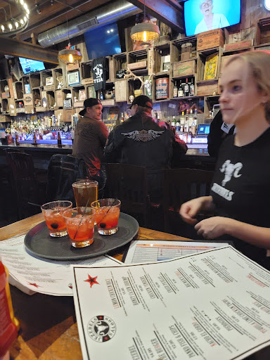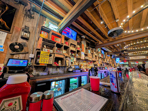 What originally attracted us to this place, is just as much about the vibe/décor as the food and drinks that we saw. It’s hard to describe the feeling you get when you walk thru their front door. It’s rustic, like you are walking into a divey saloon but a modern day divey saloon. There is a long bar to the right and high top tables on the left. Behind the bar they have old wooden crates stacked up which they have various random items displayed. Everything from an old TV to an armadillo. They are known for serving their drinks in red solo cups.