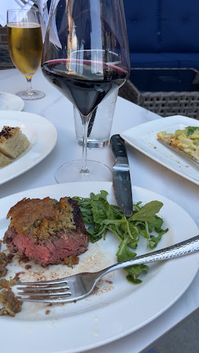 Read moreWent here with my best friend we both got the filet mignon with some blue cheese crust. We also got the bread appetizer with the beef tallow, side table Caesar salad and got cheese cheesecake for dessert. Let’s start off with the table side salad, we were sitting outside, so I’m not sure if this affects anything, but it wasn’t tableside normally that means they make the Caesar in front of you and they did not do that. They just brought me out a $15 Caesar side salad that was kind of crazy. The filet mignon that we ate was perfectly prepared, which was surprisingly unexpected because in recent steakhouse trips that I’ve been to. They just can’t get it right. I’m not quite sure not understanding but this place definitely got their temperature right and I was very pleased. The blue cheese crushed on top definitely made it taste a little better. I can almost tell that maybe our steak was a grass fed cow I didn’t have a lot of flavor inside the meat. The bread appetizer was very pleasing with the beef tallow. I’ve had this appetizer at other places. The bread was a little harder than most other places, but the dipping butters n fat made up for it was very good. The dessert was phenomenal just a plain, not normal New York cheesecake. Better than cheesecake factory so good. I definitely will be back and probably be trying the chicken that my friend’s husband got it looked amazing. He also said it was very juicy and amazing. Lots of wine options as well, which is very satisfying to a wine drinker like me and I love to pair my food so that was a wonderful option as well and the wine prices weren’t too overpriced which I’ve seen done at many steakhouses. I’d say besides a couple minor things this place is doing way better than most steakhouse franchises like the chophouse or Ruth Chris. Good...