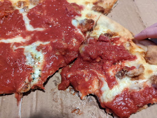 Read moreGot a large chicken parm pizza. This thing is loaded with sauce. It kind of slides off when you're grabbing a slice. It had some decent flavor but I think there's better. The cheese was pretty good. The dough tasted fresh. The bottom was nicely toasted. There wasn't a lot of chicken and it's bite sized chunks. Chicken was pretty average, just plain protein. 6/10 for not being a converted plain pizza. Also tried a slice of personal plain. Seemed like it was thicker than the large pie. Tasted decent but thin and crispy is the move. The dough was soft in the middle and had a nice toast on the bottom. 6/10. Bet the large pie would perform better. BONUS Hawaiian pizza review. This was a medium pie. Honestly pretty good. Ham is a good addition and pineapple adds a nice sweet flavor. The ricotta adds a nice creamy texture. Ricotta is also high in protein so it's a good topping. Ham could've had a better distribution but overall it's a good pie. 7/10. Fresher ricotta globs and high quality ham and this could be in the 8 or 9s. Need some Prosciutto di Parma. Also saw the menu a section dedicated to a calzome sausage roll. That sounds like something...