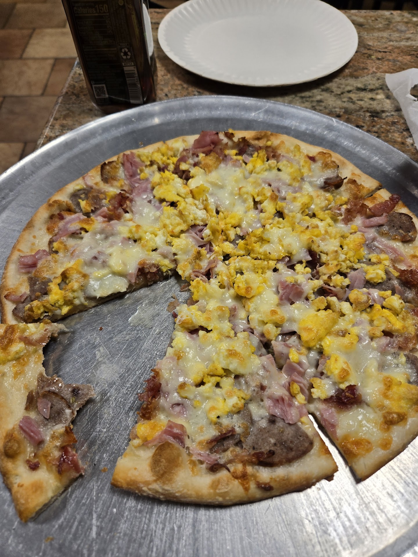 Where do I start? You walk into the restaurant and you can see your breath. The staff stated that it is difficult to regulate the temperature because the door continues to open and close. It is hard to understand that methodology as when you enter the restaurant you walk through a vestibule before entering the main area. This tells me that they did not have the heat on. We proceeded to order our meal, "personal breakfast pizza", chicken soup, toasted ravioli, and cheese garlic bread. As we waited at our table, the owner's son was sitting to our left, playing a game on his phone so loud that I could not hear the people at my table. I knew this was the owner's son as he brought out food for him indicated to other patrons who the child was. Our food came out together, which should be expected. The breakfast pizza was soggy which tells me they had cooked the pizza with one of the toppings (ham, bacon, sausage) frozen. The eggs looked like they were cooked separately and then placed on the pizza towards the end of the cooking process, which made the pizza look horrible (See picture) This is NOT how breakfast pizza is cooked. The raw egg is placed on the pizza with the other ingredients during prepping and cooked at the same time. The Toasted ravioli, had zero filling (See pictures). They were super small and not worth the money. The chicken soup had zero flavor and the garlic bread was a hoagie roll toasted with garlic butter and very little cheese. With the restaurant as cold as it was outside (35 degrees) and the poor quality of the food with a price tag of $38.00, La Vera Pizza was...