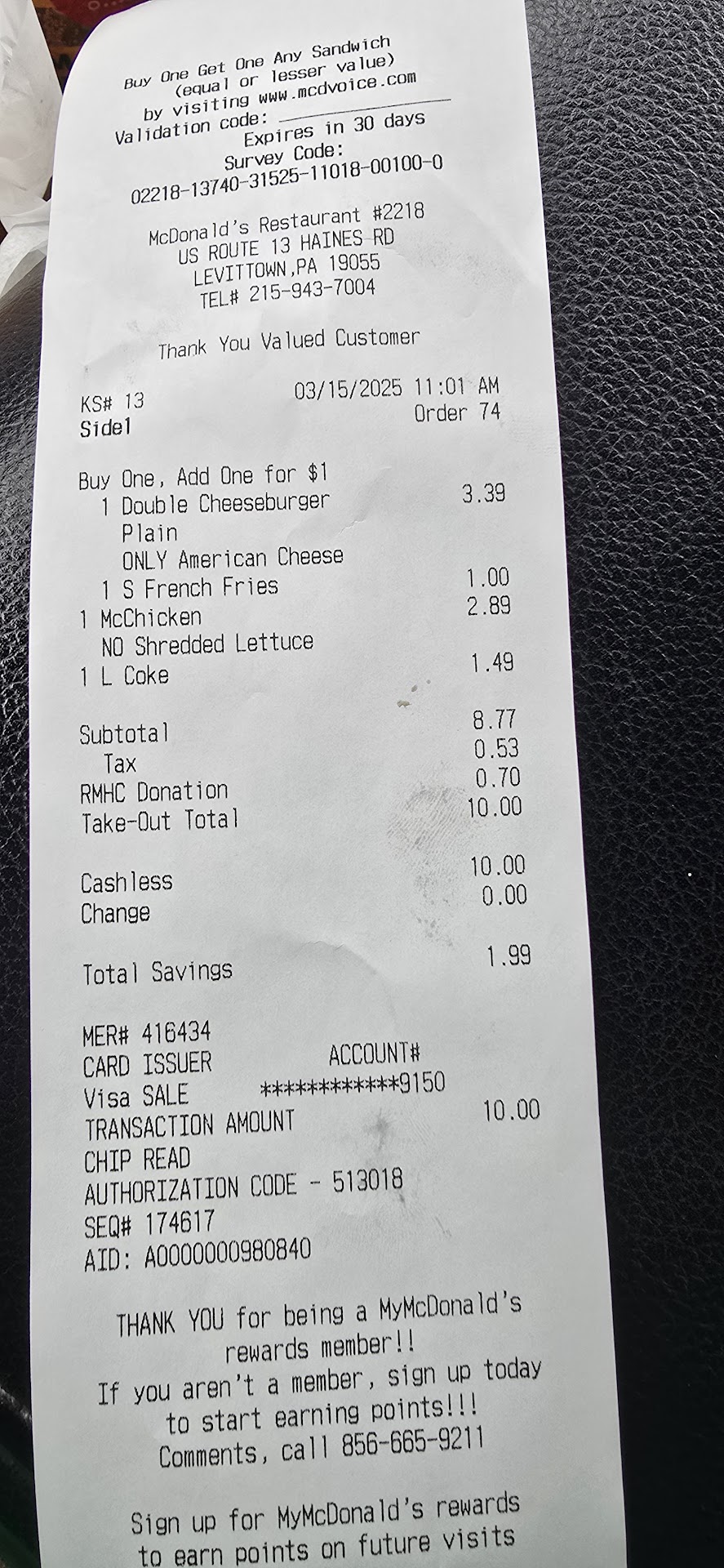 Read moreAs always I know what I'm going to get when I order from here, short changed and not on the dollar items . I used to go every Sunday for the family then started getting short changed on the more expensive items every time I stopped going for a long time. The other Friday my wife worked late and wanted something fast to eat so we tried them again they are close and convenient. I was surprised all 3 items where in the bag it looked like possibly a different crew was working to. Well my granddaughter said a couple days later lets stop and get some drinks they are only a buck ok I said. I ordered 2 Dr. peppers and 1 orange drink . I get up to the window she hands me two drinks and by , ARE YOU SERIOUS 3 ITEMS AND YOU CAN'T GET THAT RIGHT . This McDonald's gives other a bad name terrible service WOW I have plenty of other places in the area from BK to Toco's and none of them rip me of like MD's...