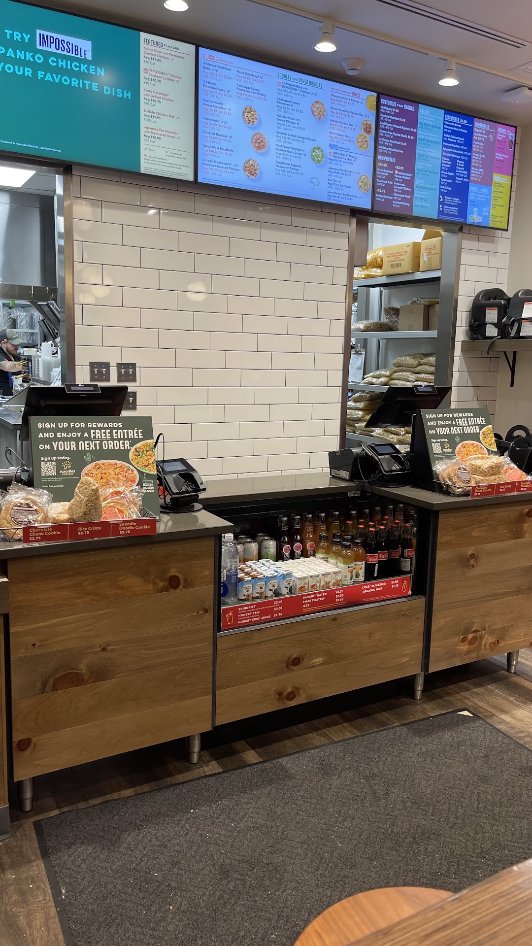 Read moreThis is a VERY NEW, just opened location. It is very small inside, only about 3 or 4 small tables. It is meant more as an order on the app and pick up at the store location. They do have a drive up pick up window and also shelves that have orders that are ready for pick up as well in case the window has a long line. The employees were very nice, the food came out fast considering they were busy. The food was good (my favorite go-to is the Japanese Pan noodles with grilled shrimp. This time I also made it a meal and added a small side salad and drink). The only thing that was really lacking was that my husband and I had to clean a table for ourselves to be able to sit and eat. The cashier did come out and clean tables after those that were waiting for carry out left. Definitely will go back.... I want to try everything on the menu now that we have a location so...