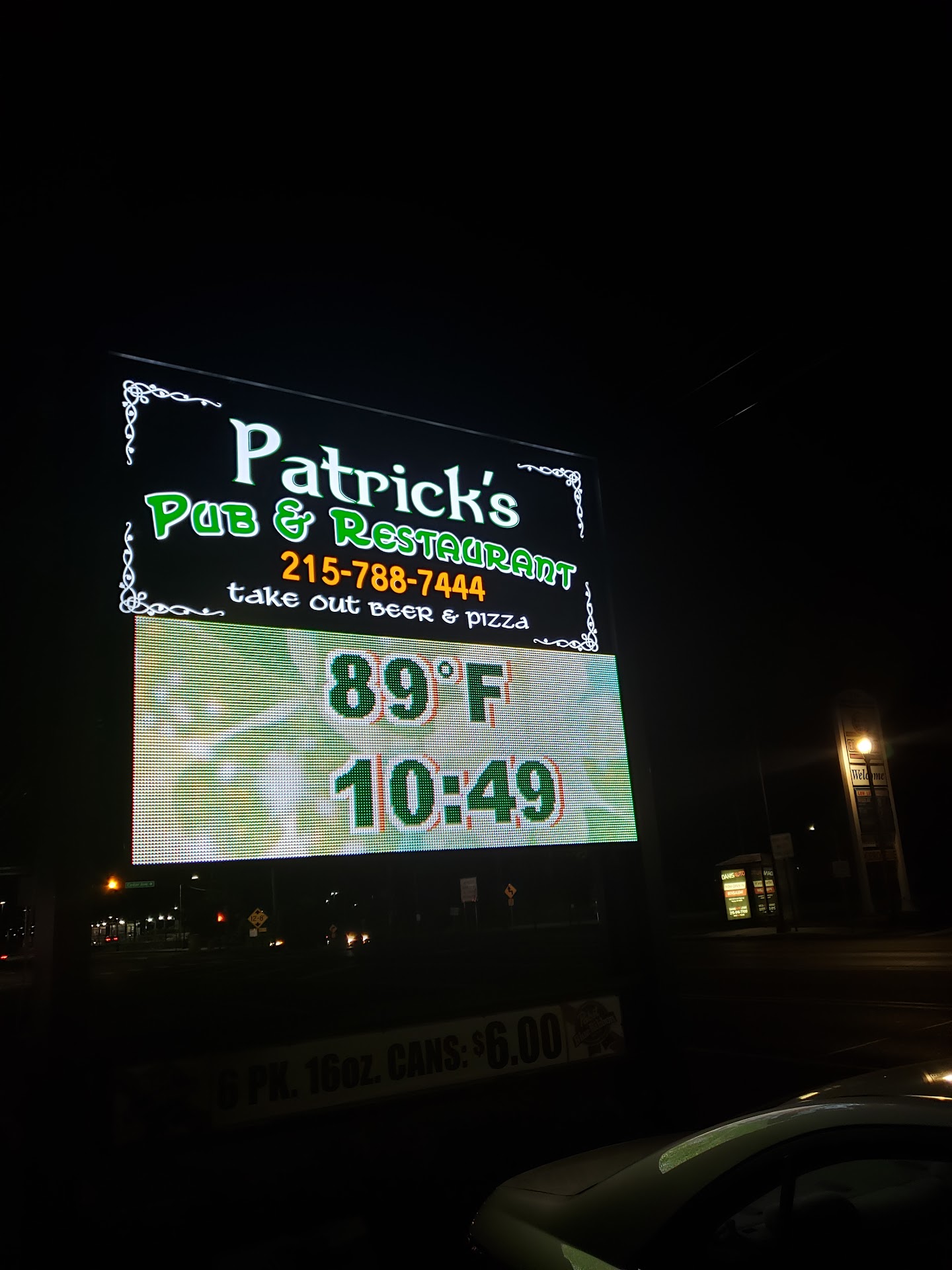 Read moreI was concerned since, 15 years ago they served the prime rib dinner. And back then it was spectacular. So me and my BFF gave it a chance. They have a bar menu, small simple and honest. If you like chicken fingers ask how big they'll be. Shrimp what size? Just ask prior to ordering. We waited a while after our order, I ordered chicken fingers and my friend ordered a cheese steak with green peppers and onions. We waited patiently because we were conversing for a while. Our drinks were full and we were comfortable. The bartender graciously let us know that the cook was behind schedule. Most importantly, if I'm going to wait for my food, I like to be updated and that is exactly what she did. The bartender did her job well by informing us of the delay. Even though it didn't seem terribly busy or crowded that kind of service is important in today's surroundings. Food was delicious 😋 Kudos Patrick's pub, keep the bubbly coming and the...