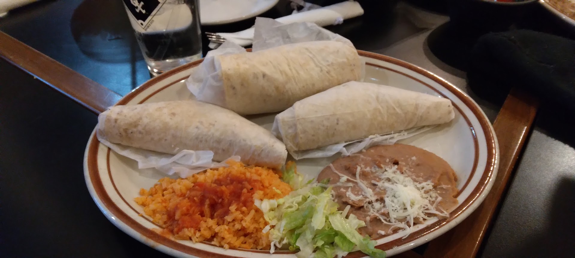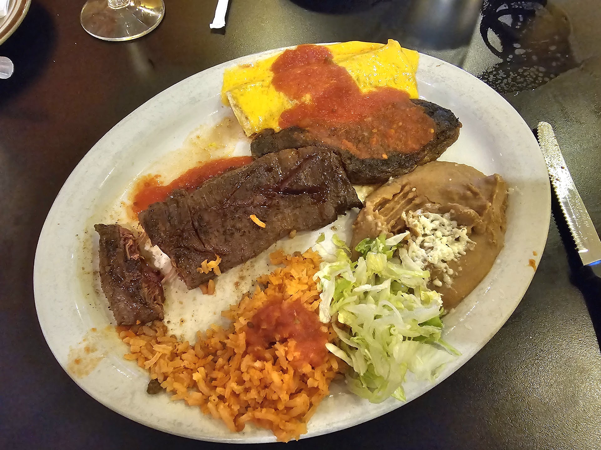 Read moreCame here because I wanted some Asian food from the place next door. Then I changed my mind. LoL This place has fun and festive decor. The service was great the whole time. It wasn't terribly busy either though. I got a large margarita which was good tasting, not too much sour. I ordered a combo plate with carnita, chili relleno, and beef enchilada. I asked for medium on the temp. What I got was not stellar. The enchilada had a half melted slice of cheese instead of shredded, with a spoon of what looked like salsa on it. The relleno looked like almost burnt thing. Steak looked like it was rare from the get go with multiple temp check cuts in it. The relleno was actually decent. The steak, bloody and very rare, but good spice and flavor, just undercooked for my liking. Probably good on not...