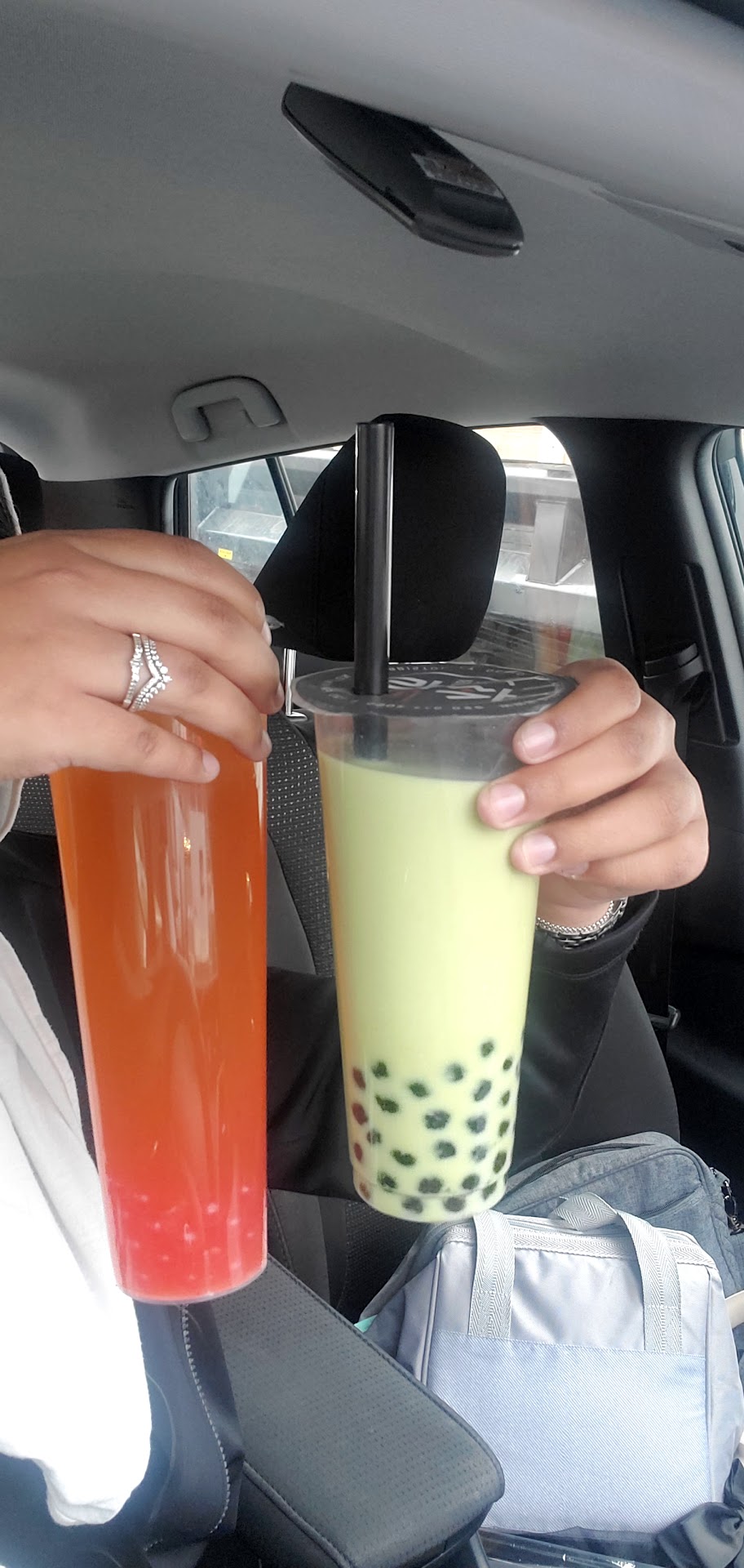 These sizes are massive. I ordered on their preferred website (meal kay via the direct link on their website) it said it would be ready in 30mins and I got a text to pick it up in 2 minutes after placing my order. I was not 2 minites away. Obviously the sizes are massive and as you can guess watered down to achieve this big size. I wish it was noted on the ordering because I ordered two drinks and definitely can not finish either. The matcha doesn't taste the best, very watery and not a strong taste. I did pay for brown sugar and was given regular. It's very soft like pudding. The boba portions are off as my medium matcha has more than the large (more like six flags large haha) guava green tea. After arriving there was someone sleeping under a jacket behind the counter so I had to wait a couple minites before someone appeared and then that same person who was resting handed me my drinks. I am definitely open to trying this place in the future but I would advise against ordering online and unless you're preparing for the whole day, I wouldn't get the large regularly. It's hard to tell but the large is literally bigger than my head which is great but unexpected to see. It's good to know someone has this option. It'd be nice if you could add another scoop of boba or other syrups etc.