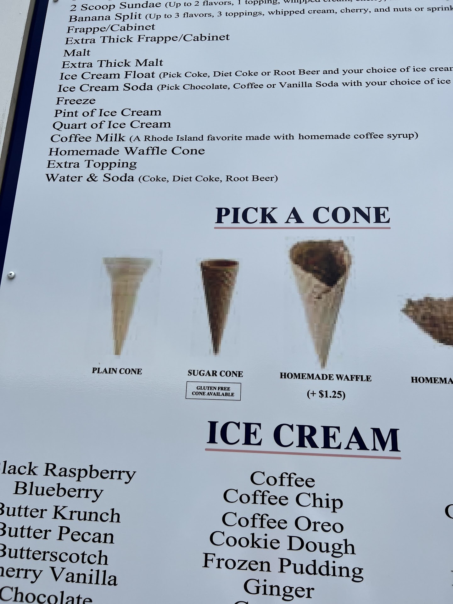 Very disappointed with our experience here. First time we went in, the waffle cone came out of the display case and was gross. There were 3 young girls working who looked like they had no idea what they were doing. Then a family came in through the back door and the woman proceeded to put her very long hair up in the middle of all kitchen area / where the ice cream was!! Fast forward to 4th of July when my other family members went in and asked for a scoop of ice cream in a cone and were told "we aren't doing that today", and they received a cup. The place was also empty at this time so it's not like they were to busy to do a cone scoop. The staff appears to not be properly trained,...
