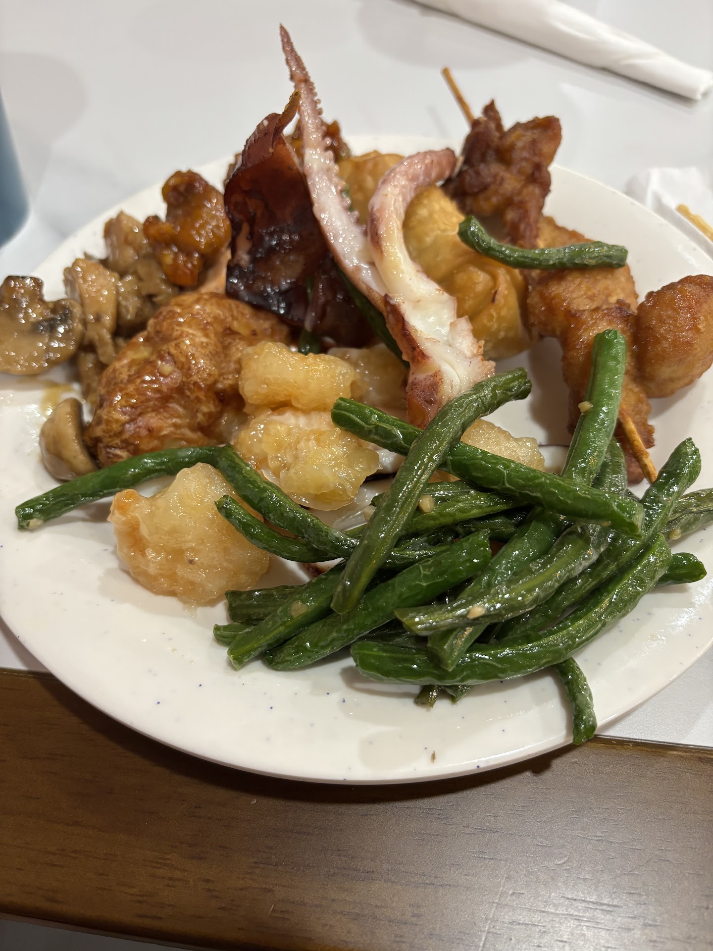 Now, onto the food. It was very average—basically what you’d expect from any other Chinese buffet. Some of the labels were missing entirely, and others were completely inaccurate. For example, the bao buns were labeled as red bean, custard, and pork, but every single one was actually red bean. When I pointed this out to a staff member (who should know better, especially since I’ve worked in food), they just shrugged it off and didn’t seem to care. What if someone with an allergy had eaten one? That’s a major safety issue.