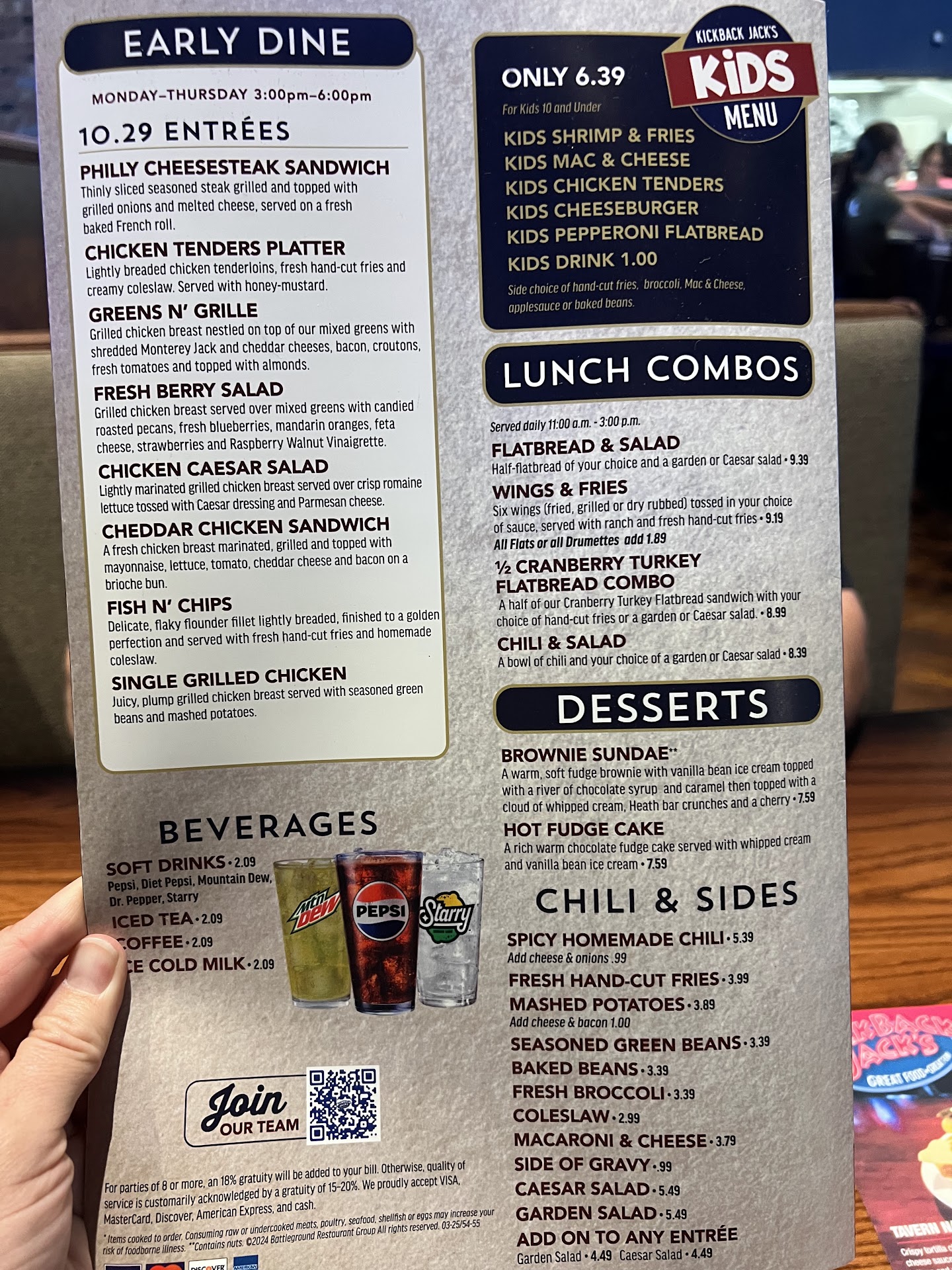 Read moreI did not take pictures. First time going we were a group of four so we tried a little bit of alot of stuff to share etc. Fish and chips- Good, the tartar sauce is spot on and fries were good. It might be better if I asked for a lemon to go with it, the coleslaw I did not care for at all. Ribs, shrimp, sirloin and chicken tenders were all delicious too. Flatbread- I heard the Carnivore one is good, I opted for 3 cheese with 2 toppings and I did not care for it, it was the sauce for me but others at the table enjoyed it. Steak and Cheese Eggrolls-SHUT UP!!!! They were 🔥. Grilled Lemon Pepper and Honey Buffalo wings-----(see Steak and cheese eggroll remark lol) Hot fudge cake was good and not too sweet (which is good) The Strawberry Cake they have right now-It is a piece of heaven in your mouth! Let's get to service.... We had Zack as a waiter and he was freakin PHENOMENAL!!! He has such a GREAT personality and goals. He is such a ray of sunshine and so positive. He should be a Trainer, Leader, whatever it is....HE will go far no matter where he is but everytime I go back, I will make sure he is working. I do think if you have not tried Kickback Jack's then you should. I hope you enjoyed it as...