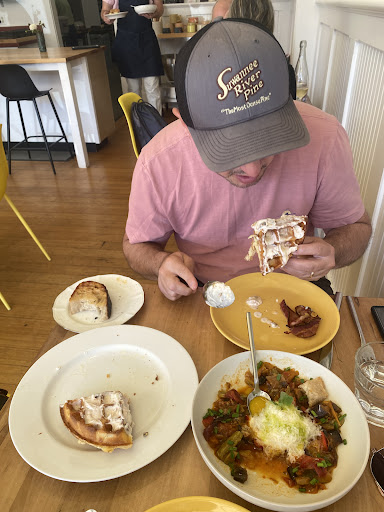 Read moreWe heard the food was amazing… the atmosphere was sweet and bustling, the menu- mouth-watering. The woman who sat us was lovely but everything beyond that was a total debacle. When we sat down we were not told we had to order at the counter, the line for take out was super long so after waiting for 10 minutes in that line, only then we realized on our own that there was another register for dine in. We got out of that line only to find out that register was cash only (and always was! No sign indicating it!) So we had to get back in the end of the long take out line (with three hungry kids waiting!) In the midst of ordering we were told there were no substitutions (couldn’t replace bacon for ham and only option was to order another $13 meal that might come with a side of bacon to get the $3 side of bacon- what?!?) So I ask to talk to the manager and while waiting for the surly faced manager (owner/chef?) to appear we were informed it would be a 50 minute wait for food!! When the woman in charge came out her energy and demeanor was sour and unapologetic. Highly recommend the sweet diner (Snap’s) down the street for a delish egg sandwich without the side of pretension. Ughhh! shared our story with locals who don’t even go in their for their lattes anymore because of the unwelcoming and...