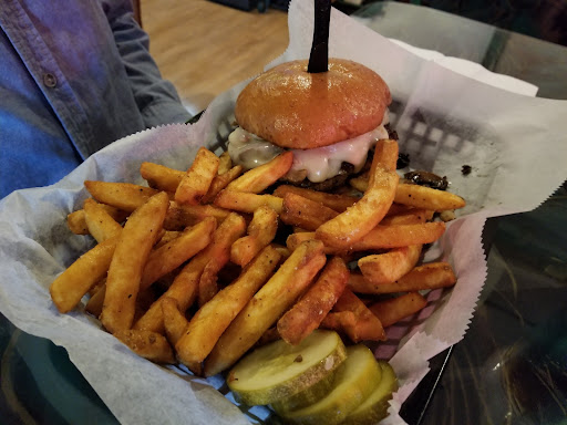 Our burgers were gigantic. My wife had the standard cheeseburger which was thick (around 8 ounces) and juicy. Unlike other places, Phinny’s has rolls that actually FIT the burger and held together to the last bite! I had the mushroom Swiss burger which was loaded with sautéed mushrooms. Both burgers were cooked EXACTLY as we requested. Sweet potato fries and regular fries were so good, cooked well done and crispy. We loved the big slices of real dill pickles that came with our food as well. I also had the boneless chicken wing appetizer. Huge portion size, good kick to the buffalo sauce and real bleu cheese dressing with chunks of bleu cheese.