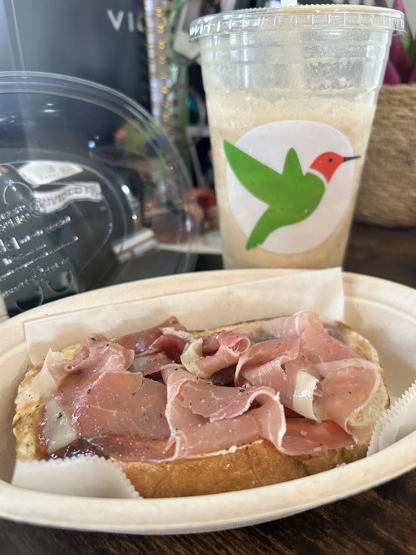 Read moreGreat experience overall! Immediately greeted as I walked in, I could tell staff was in mid conversation and instantly stopped it to greet me and take my order. Upon placing my order I had a couple questions to which they were quick to answer and provide valuable feedback. I got the nuts about protein smoothie and the fig prosciutto toast. I was hesitant about the smoothie being coffee, peanut butter, and cinnamon but the ratios of the flavor were perfect it was a little hint of everything that went down quick and smooth with a delicious aftertaste of each. As you can see in the picture they did not skimp out on the prosciutto and everything tasted fresh. I will definitely be going back. The place was sparkling clean and all of the staff was friendly, working as one and well put together. I hope they get some more protein smoothies on...