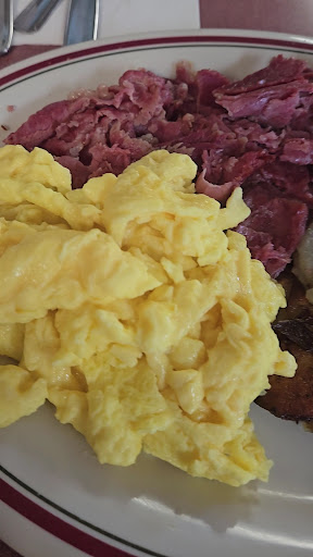 Edit: I think the picture shows how unacceptable the eggs and potato pancakes are. The owner is twisting the conversation we had in his response. If I pay for something, I expect quality. You serve up what is pictured that nobody wants to eat. Who wants to pay to throw food in the garbage? I would rate this negative 1 star. The "cook" was rude & argued when I complained about our breakfast to go order. Tried to tell me eggs cook in a box. Ok, pal. They don't brown sitting in Styrofoam. This sorry excuse for a cook made every reason up to say if the food wasn't acceptable, it was because we got it to go. Their potato pancakes are bought & were disgusting. The home fries according to this lazy short order cook must have sat in the box to become soggy. When you don't brown home fries & crisp them in the very first place..they will automatically be soggy. No refund & did not care about the fact I would be writing this review. I would assume nothing is made in house & famous corned beef is just from a distributor like their sorry potato pancakes. Even 2 children didn't want the garbage this...