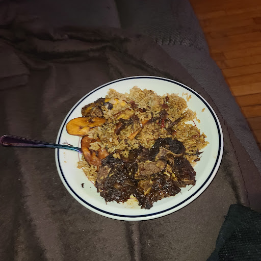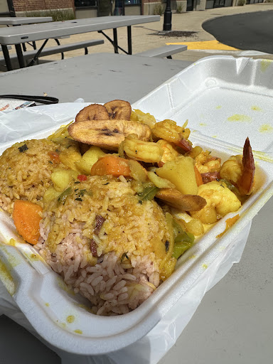 We went here at 2p, the place was quiet. People came in and out occasionally but foot traffic was low - non peak hours. The cashier was pleasant, and was very courteous. I had ox tails with white rice & side of plantains and my daughter had curry chicken. The portions are just right! Your money's worth. The oxtails is succulent and the gravy was superb. Curry chicken was too bold to my tasting, too Curry-ish, I made that up, lol. My daughter seems to like it tho. In a plate you get rice, choice of rice & beans or white rice. A side, choice of mac&cheese, cabbage or plantains.