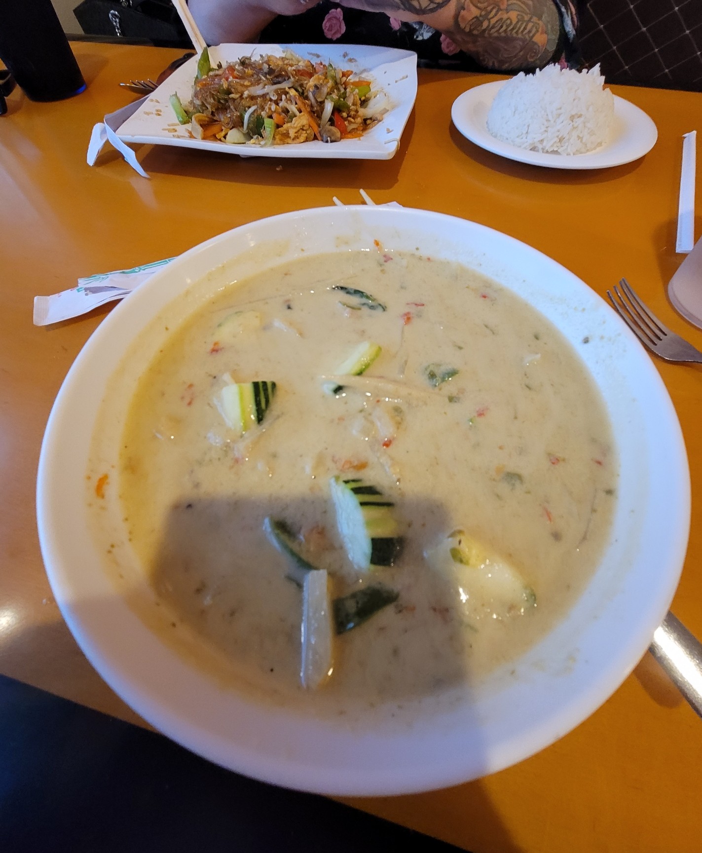 In addition to the love for their curries, I am also very fond of their Tom Kha. So far their Tom Kha is better than the majority of other places I visit. My wife typically orders whatever sounds to her at the time, which is great for me because I, too, get to sample more of the menu. She is partial to noodle dishes, which this last visit she got the N49 and it tasted very good. Between my wife and myself, we haven't disliked any meal we've gotten.