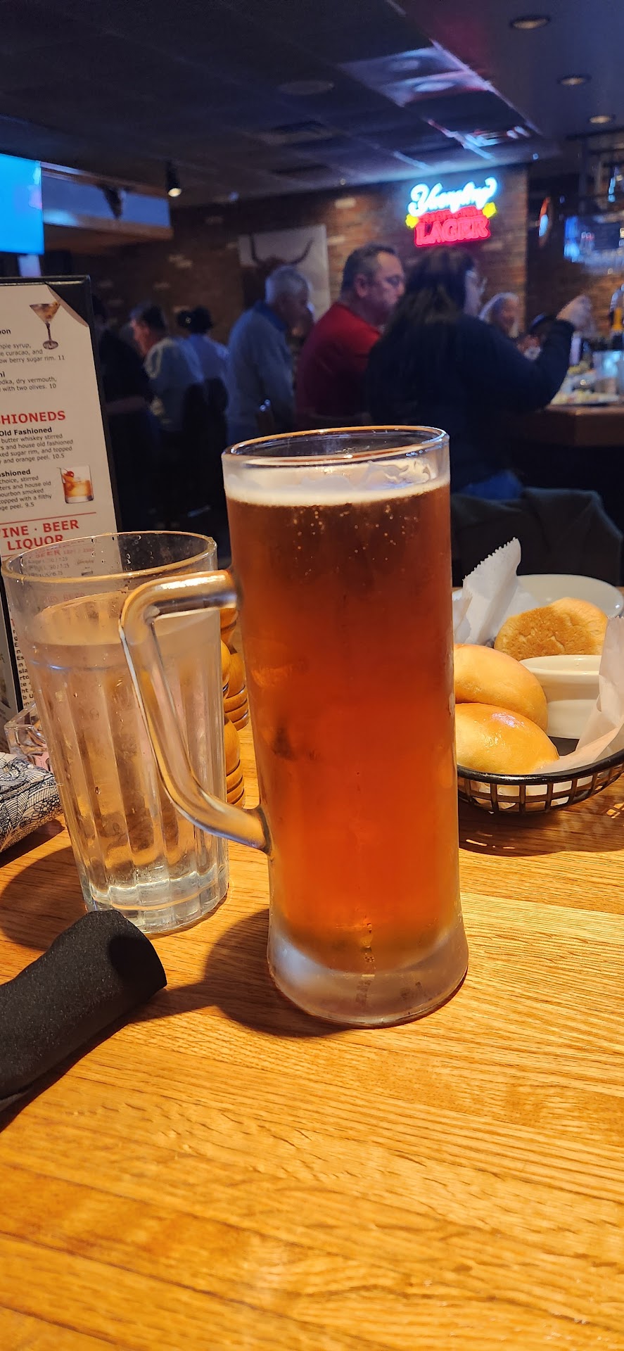 Read moreVisited on a Friday night approx 6ish, we had a 40-minute wait. It's not too bad for the time and day. Did not have anything like take your number and will text, though, which may have been one of the reasons some of the patrons turned away since it was packed in the waiting area. We were seated in the bar area at a hightop, and our waitress was prompt to greet us....I believe Elaina was her name. She took our drinks and we ordered an appetizer. Drinks came quickly, and my beer was in a frosted, very cold mug, which was nice. The appetizer never came, but dinner rolls were brought out. They reminded me of the type you would get at Texas Roadhouse.....almost. the rolls were hot and fresh, which was nice.