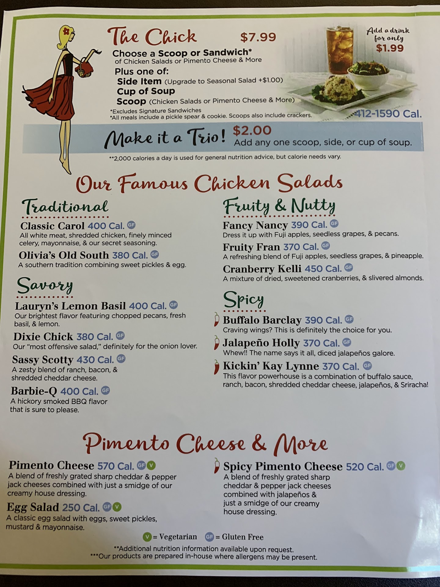 Read moreA pleasant niche in the fast-food forest. A place to escape from fried everything. Simple chicken salad with a spectrum of flavor variations available. You will find one you like. The spicy, Jalapeno Holly and Kickinâ Kay Lynne work for me. I never pass up the Chicken Poblano Soup, even on a hot day in July. I had a scoop of Jalapeno Holly on the Classic Salad with the Chicken Poblano Soup. The Classic Salad under the scoop was fair, but it is all about the chicken salad, right? It made for a nice filling meal. I tried the Poppy Seed dressing. A little too sweet for me. Next time Ranch. Not five stars, but a nice meal.