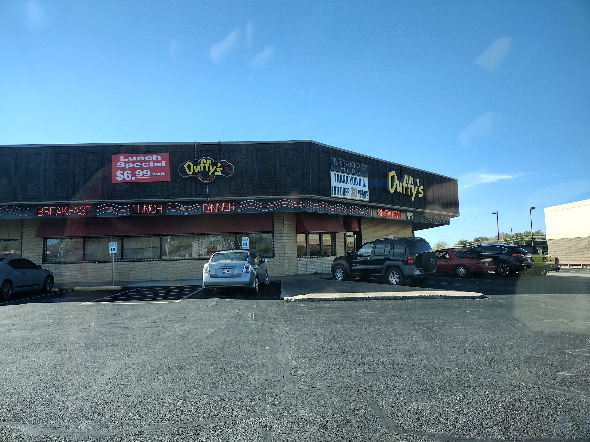 This place is a hidden gem!! Just stopped by there today with my wife to try it out. The dinner style layout was nice and very clean. They had a lunch special for chicken fried steak and a side for just $4.99?!?!? So we went in and we were greeted by a very friendly hostess who invited us to pick a table or a booth, we chose a booth. We both ordered the chicken fried steak, I had mash potatoes and she had fried okra. The waitress was very nice and friendly and our food was ready fairly quickly. It came out to us hot. The portions for this, in my opinion, was amazing, and please keep in mind, I'm 5'11" and 235lbs, and this was enough for me. Everything tasted fantastic. My wife and I will plan on going here on a more regular basis. Duffy's had been around for over 30 years, and after eating there, I...