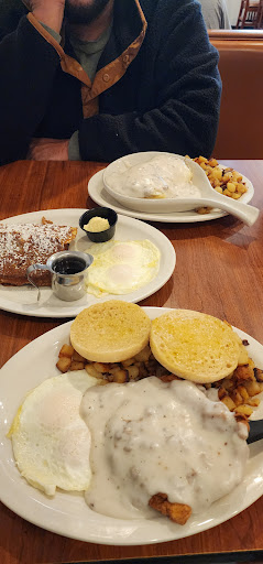 My experience started off poorly. I waited over seven minutes for the waitress to acknowledge me and take my drink order. Though she claimed to have been at one of her other tables I had watched her standing at the front counter on her cell phone texting. She could not give me any recommendations and ultimately had a different waitress take my table over, which is fine. The new waitress recommended several things, including their big boy, the omelette, and their eggs Benedict, but I settled on my usual order of eggs, bacon, and a biscuit and gravy with sliced Tomatoes.