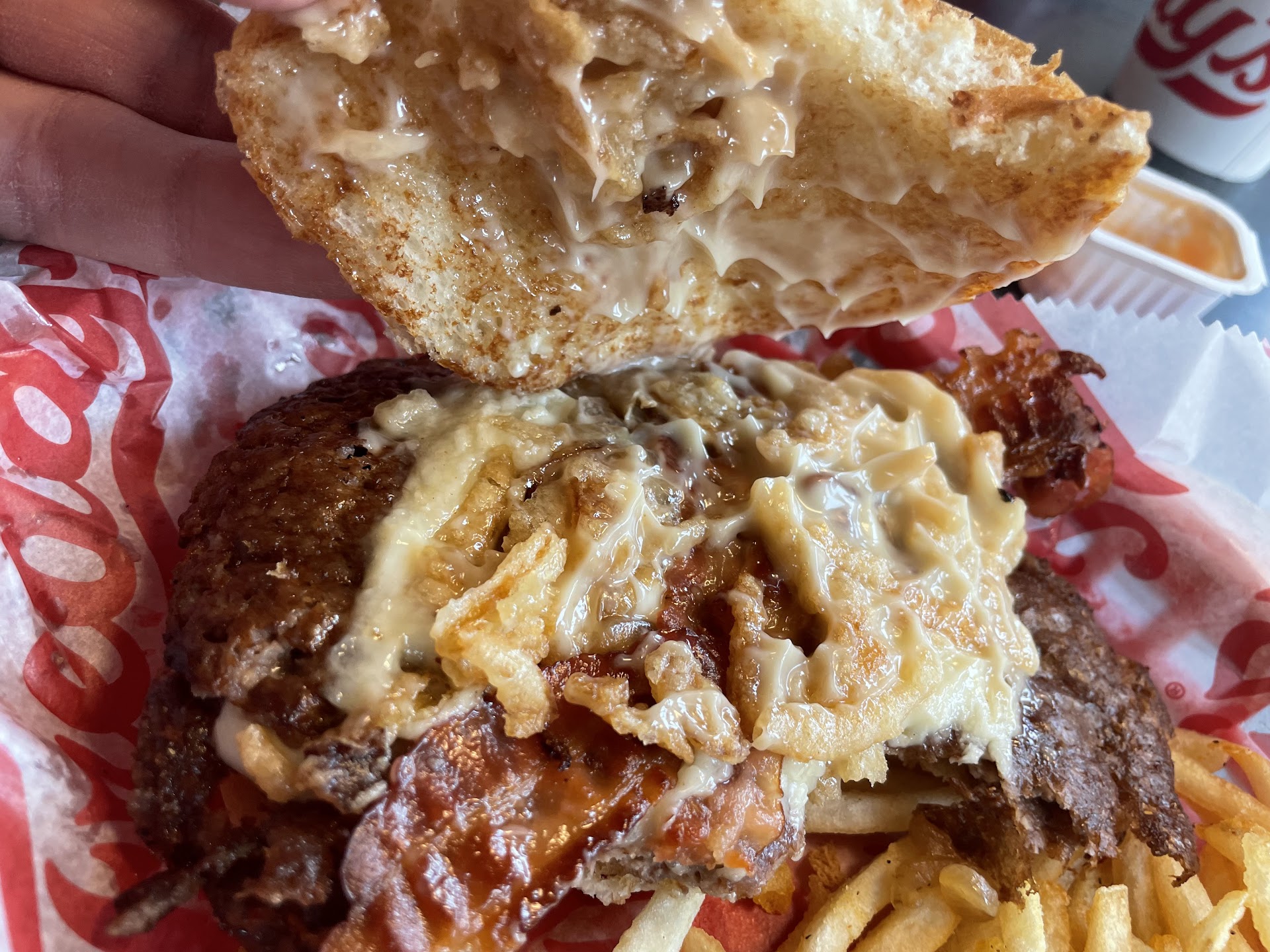 Read moreMy wife and I went here today to try the French Onion Burger. It had a really good flavor, but it was pretty ugly to look at. I love their fry sauce. The shoe string fries are so good. My wife got the peppermint shake. It was delicious as well. The woman that waited on us was super nice and friendly. Her name was Yulia I believe that is how you spell it. She was great. The restrooms were pretty disgusting though so I had to rate the experience lower than I would have liked. My wife’s burger was wonderful as well. Get the fry sauce instead of ketchup, it is worth...