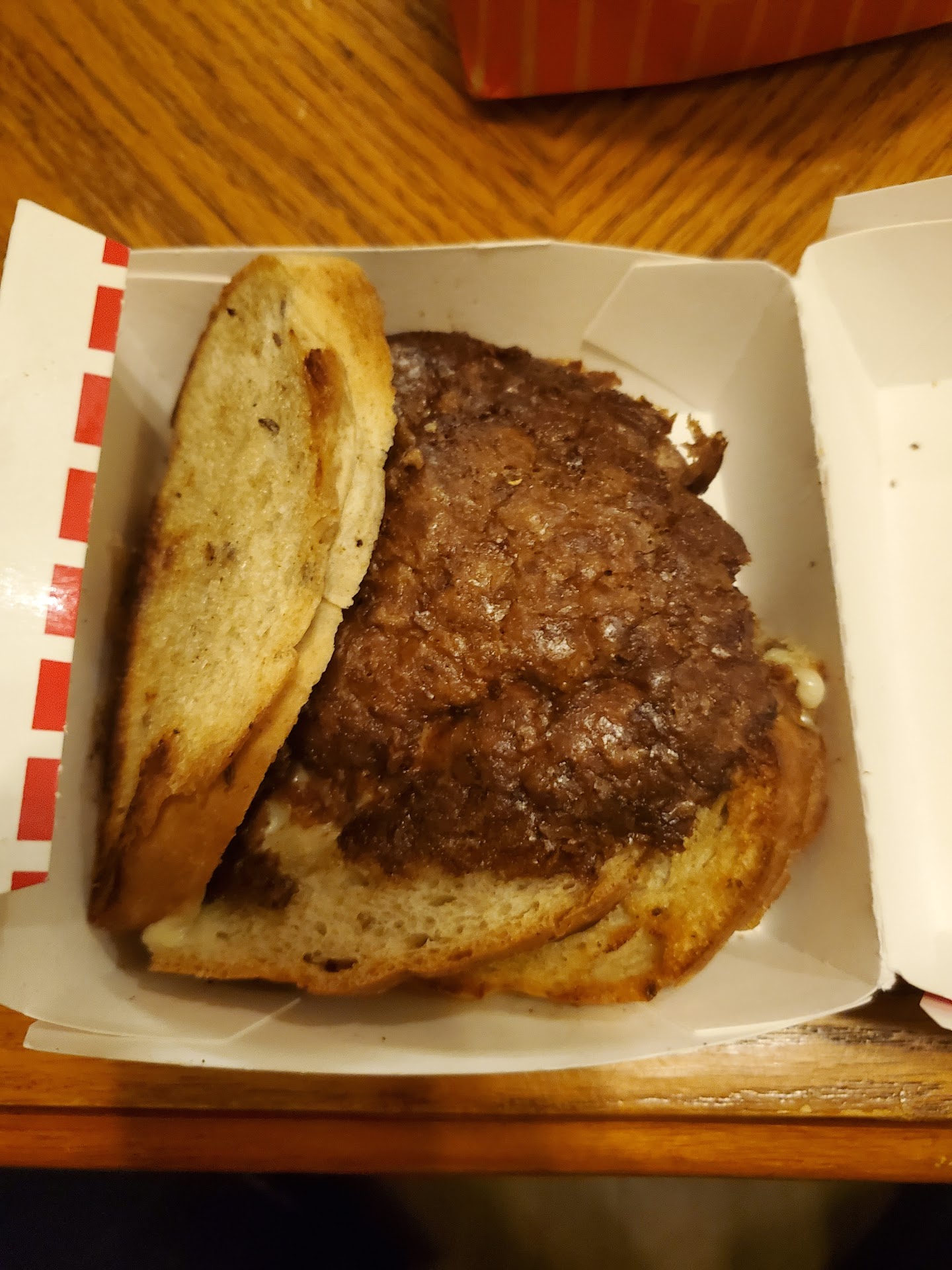 This is the saddest patty melt I have seen in my life. Ordered three meals and all looked this bad. The patties were dried out, super thin, and looked like they were what is scrapped off the grill when the real burgers were done.