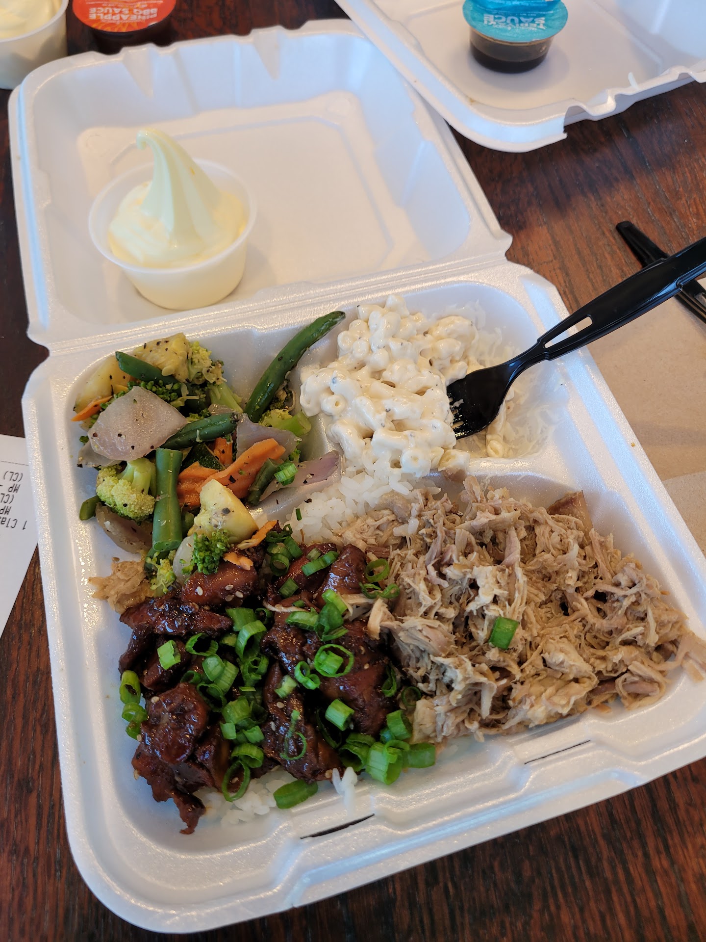 Read moreMy husband and I tried this place when it first opened up here and Broken Arrow. And my husband really liked it, I was not a fan because the macaroni salad was overly salty. Plus, The chicken that I ordered was a little burnt and very very very tiny pieces, And the steam vegetables were not steamed, they were undercooked significantly . I did try my husbands, and he ordered the pork which was pretty good. So I chalked it up to new opening mistakes.