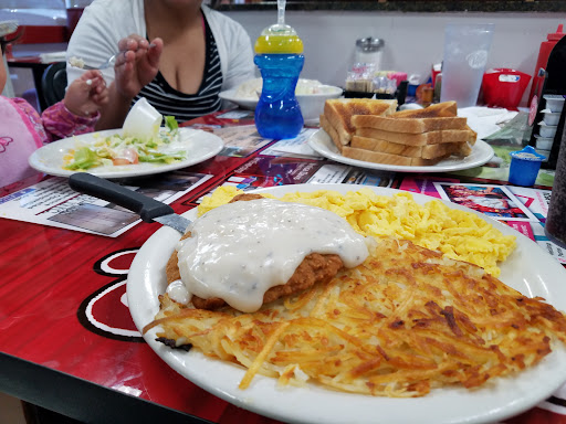 Read moreMany new diner/cafes have opened in Broken Arrow over the last several years. The well-established favorites get overlooked as everyone rushes to the new eateries for a few weeks. Meanwhile the old favorites keep on cranking out delicious food to their loyal customers. Eventually the new gets old, customers sort things out and the strong performers survive. Jake’s Café is still strong, holding the line since 1999. The food is good; as good as any diner/café that I have tried in Broken Arrow. Better than several. Conveniently located on the NW corner of Aspen and Houston St. The restaurant is on the south end of a row of brick red roofed business suites. Easy to spot. Adequate parking. Inside the restaurant promotes a 50’s theme. Pictures of movie stars relevant to the time cover the walls. Marylin Monroe dominates the space. True diner ambiance. Seat yourself. Menus are delivered in minutes. Decide on your favorite breakfast while the friendly waitress fetches a drink of your choice. The usual for me. An all-American breakfast combination meal I use to evaluate the cook’s skill. Cooked perfectly along with great service earns 5 stars. Perfection delivered today at Jake’s, 5 stars! My wife spotted a new item on the menu board, “Banana and Pecan Pancakes!” One big one for her that smothered the plate. Thick fluffy, loaded with bananas and pecans and with a side of bacon. Check those pictures. Comfortable café, fantastic food and excellent...