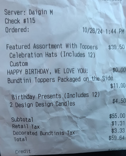 Read moreBundt cakes for the win! This BA location really came through in a pinch for me when a popular cookie store completely botched (didn’t fill) my large catering order. I walked in to NBCakes & they were amazing. So sweet to me as I was near tears. Filled my order for my party in mere minutes & really came through for me in the clutch on a busy weekend. This is how to run a small business. With kindness & quality. They have earned my repeat business for my future...
