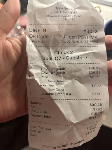 Read moreI went to Oppahouse to try it out before bringing my team. I picked the Gold Tier ($38.99)ea. My grill was way too hot, but no meat or veggies came for 40 minutes. Rice came only after I had already finished eating. Half of my order never arrived, and it completely ruined my appetite.