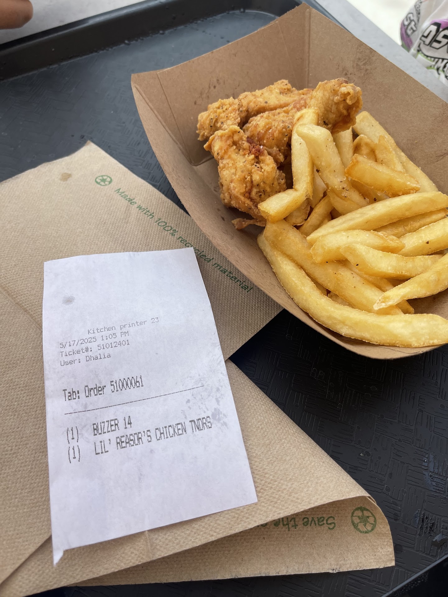 I was really looking forward to a nice afternoon with my little family. I did try to find a menu online before hand to no avail. I thought they served pancakes all day, I guess they stop at 11. No signage or anything to let customers know that. No biggy figured we would order some lunch. Stood in line to order a shareable meal only to be told I can’t order that on the patio. We have to go inside to get that. Again there was no sign or instructions to indicate that but, ok whatever. We hop out of line and head inside. My partner and I decided to get sushi from inside and just order my son the kids chicken tenders. It took 35 minutes on the dot to get my son’s 2 chicken fingers and basket of fries. The patio was great and loved the playground but the actual grill of this patio and grill portion needs some work. Here is a picture of their lunch menu. I asked before I left, you can order everything on this menu outside on the patio except the bottom right portion. Those can only be...