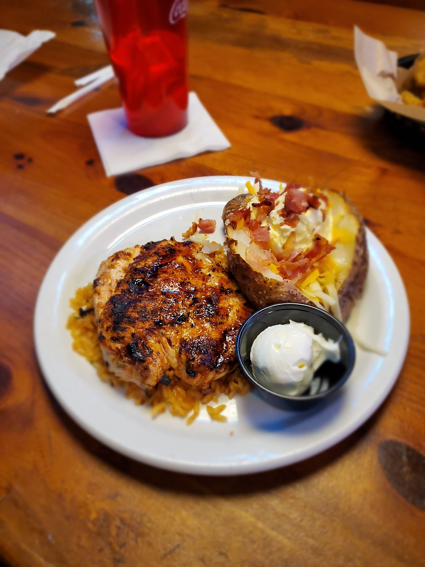 Read moreA plus was due to covid 19 they had every other table closed. Thatâs about the only thing I can say positive. Negative weâre the following -Was wiping only the back and frony of the menu. Not the inside at all. So how does that do anything. -Got seated and had to ask our table to get wiped down (it hadnât been clean or if so not very well crumbs were still there plus drink rings from the glass of whomever was there before us). -when when we asked the lady she went up to where the were wiping the menus at the front and took their rag. And then came and wiped off our table. hmmm. Didnât even use any sanitizer. Ugh. We almost left then. WE SHOULD HAVE!! -had to ask for our chip trio (waitress had for gotten) queso had so much fillers hardly any cheese) -waitress seemed more interested in taking care of a table of 6 then us table of 2. -had to get our waitress attention for Salt and pepper For refill of tea (and that was only once) Asked for our rolls 2 times. Oh yes. They had just came out Lololol. Instead of her bringing them to us in the first place. -ask for the manager on duty. We got the meat combo (sausage, chicken ribs). Oh my God. The ribs were so dry I didnât enjoy. (We shared). Hubby had the chicken and sausage. Chicken was ok. He Ate 3/4 of the sausage because part of it was tough at one end. Ribs. I tried but they were very dry. Talked to manager. He stated let he take care of it Or he could give us more bbq sauce. Lololol. More bbq sauce isnât going to help w dryness. But I stated no because hubbys wasnât to bad and he had eaten all but the 1/4 of the sausage. However. The manager knew we werenât happy. It would have nice for him to take some of it off due to the very very dry ribs. But nope. -the waitress knew we werenât happy. She ask if she could give us drinks to go. I stated no because I had water. But hubby said yes. Yup. U guessed it we waited. I even went to the restroom and back. Still no to go tea so we left. *Not worth the $30.00. And yes we still left a $5.00 tip but shouldnât have. Would have left a great tip if food was good and we had been waited on like we should have been instead of asking and to catch our waitress to ask. If the table had been cleaned properly. I hope the table of 6 had good food and left a bigger tip. And *NO WE...