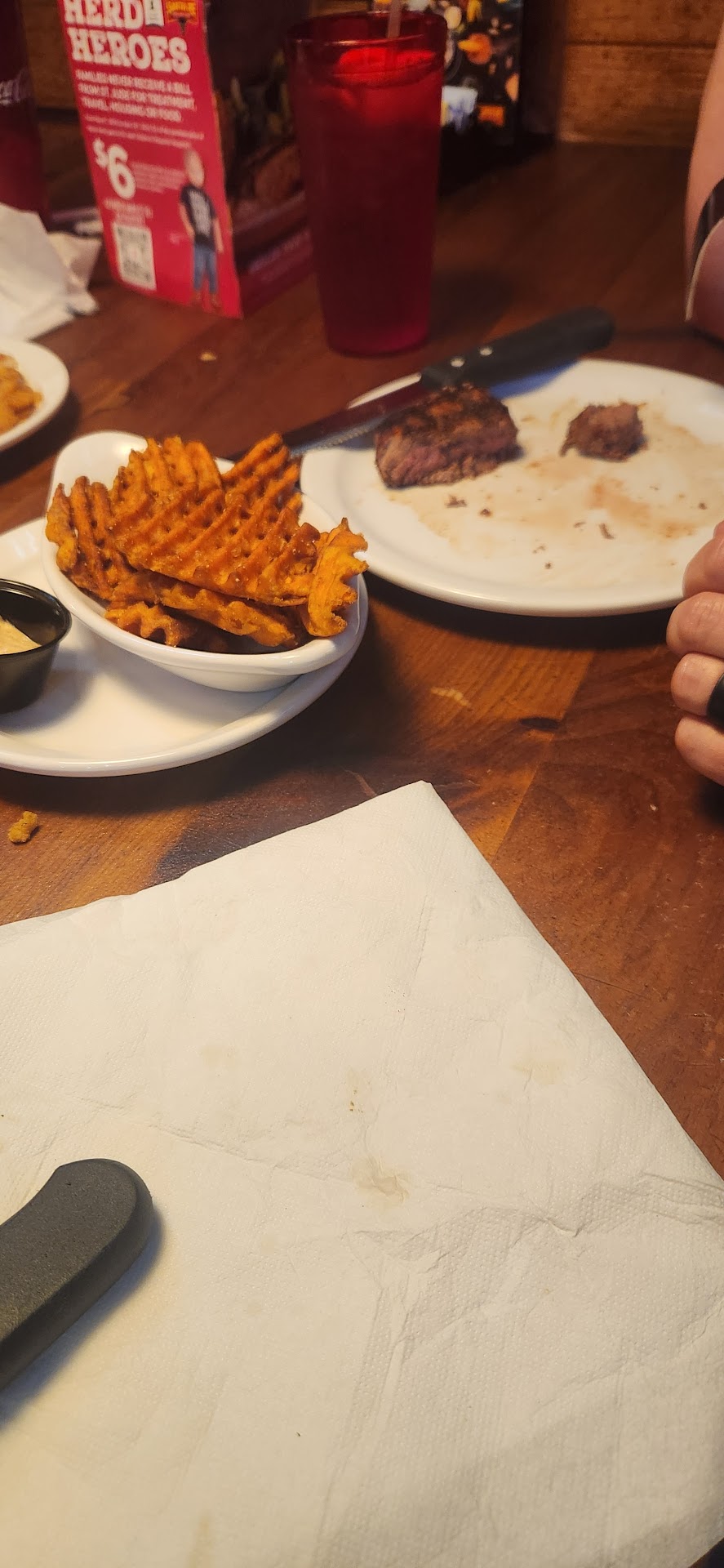 Read moreMy family and I will never return to this restaurant. We have only ate at this place 3 times and each time it has gotten worse. The first time it was amazing, the second time I placed a Togo order of the salad that I got the first time and it was only 1/4th of the size that it was when we dined in. The third time 9/7/23 we had gone for our first wedding anniversary and to celebrate the birth of our brand new baby who was only 5 days old. We both ordered a medium rare steak (which I waited 9 month to be able to have) and potatoes. When our food came out both my husband and I noticed a huge hair sticking out from my potato before the plate was even placed on our table. After pointing it out the waiter took it back and brought me a new potato and the same steak. Then the waiter just left and never asked if our steaks were cooked properly, which they were both over cooked. After waiting 10 min for him to come back to bring it to his attention he took the steaks back and had new ones cooked. Another lady who I am assuming was the manager brought them back and had us cut into them and they were still over cooked but by this time it was almost closing time and we felt bad for being there so late we just ate them. We were trying to rush out so we werenât there passed closing. We received our check and were very disgusted to find there was no discount even offered for their being a hair in the food. My husband went ahead and paid but when we got to the car my postpartum emotions got the best of me. My husband tried to then go back to talk with a manager about it but the doors were locked. He called and spoke with the manager who then told us because we paid cash they couldnât issue us a refund but only a 10% comp card for out next visit. After explaining that at this point we do not want to come back she did not offer us any other type of compensation. Iâm not asking for a 100% refund but to only be offered to cover the tax we paid, come on this is not how you run a business. Moral of the story, do not go here they do not do right by...