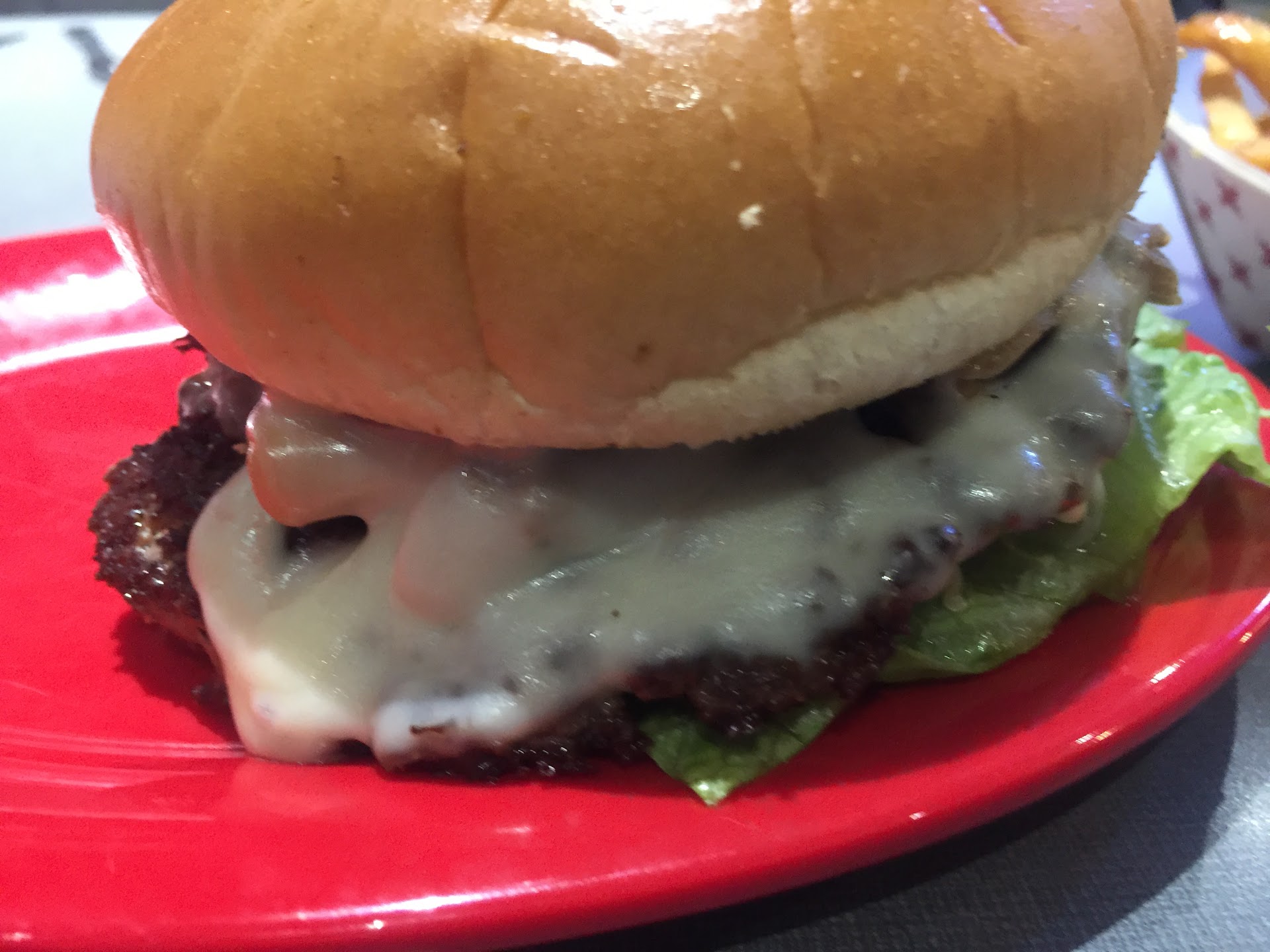Read moreOrder food, get a number and cup, fill cup at soda station, pick seat, place number above papertowel roll, and they'll bring out the food. They also collect your plates when you're done. (I'm putting this because I was unsure if we had to drop it off somewhere.) Started with the loaded queso and chips, which was good and already filling. Got the mushrooms Swiss burger (side of onion rings) and Jalapeùo bacon burger (no side). Both were delicious. The pattie was crispy on the sides while still tender on the inside, which was amazing. Onion rings came out hot hot, and I could've had more crisp to it, but it was still good! (I mixed ranch and ketchup for the dip.) Drinks - we got The Prince (mule) and the Tropical Crush (Mai Tai), and man, it was both delicious! Miss Janessa gives you a warning that the Mai Tai is hella sweet. It definitely packs a punch. I got two! All staff are very friendly, the establishment is clean, and so are the bathrooms. Food and 2 drinks each was a total of around $60, which is a steal in my eyes. Booths, high tables, or bar for to choose for seating. They do have...