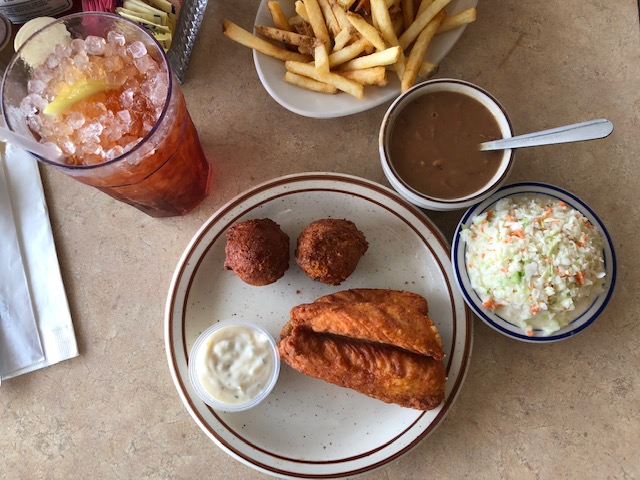 Read moreDoes NOT live up to the hype...after hearing of this spot for almost a year, we finally went in today. Our family of 4 ordered 3 different "platters" which included clam cakes, baked potatoes, scallops, shrimp, catfish, hush puppies, and cole slaw. The ONLY thing that was really good was the fried shrimp (helping account for the 2 stars instead of 1). The crab cakes looked good, but were not at all; the seasoning used was bland, and even the hush puppies were bland too. Whatever combination they used did not carry any flavor we could enjoy. The fried catfish was nothing special at all...the tartar sauce saved it though. The cole slaw was tainted with what tasted exactly like contaminated tap water from somewhere like McAlester (was evident in the water used in our drinks, too)...the baked potatoes required a heavy hand to break up (were both undercooked, but somehow burned on the outside despite the aluminum wrap)...the scallops were fine. So, with all that said, I have to say it was one of the worst late lunch/early dinner dining experiences we'd had in a while. And oh yeah, the fries were OK, but also nothing to make a fuss about. We spent $60 for all four of us to eat, but the fair price (and serving sizes) still didn't justify the poor quality. We've eaten at all types of seafood restaurants from here to Hawaii, and this was the worst. Even Long John Silvers might've been better on this particular day. Finally, the wait staff was friendly and attentive, but won't be enough for us to ever return. Disappointed today, and it's possible we just ordered the wrong things off the menu...but...if this is considered one of the best in Tulsa, we'd hate to...