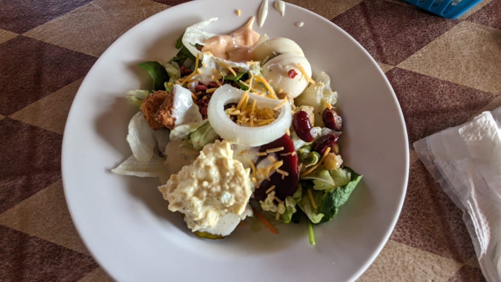 The fried pickles weren’t great, so I sent them back after one bite but kept everything else. I had fried catfish, which was amazing—perfectly cooked! My salad was good too. However, the chopped sirloin steak I ordered (medium, with onions and bell peppers) came out well done, and the curly fries were bland. I sent it back, and although I didn’t ask for a refund, the waitress seemed agitated and immediately mentioned it would still be on my ticket. Her tone felt dismissive, which I didn’t appreciate.