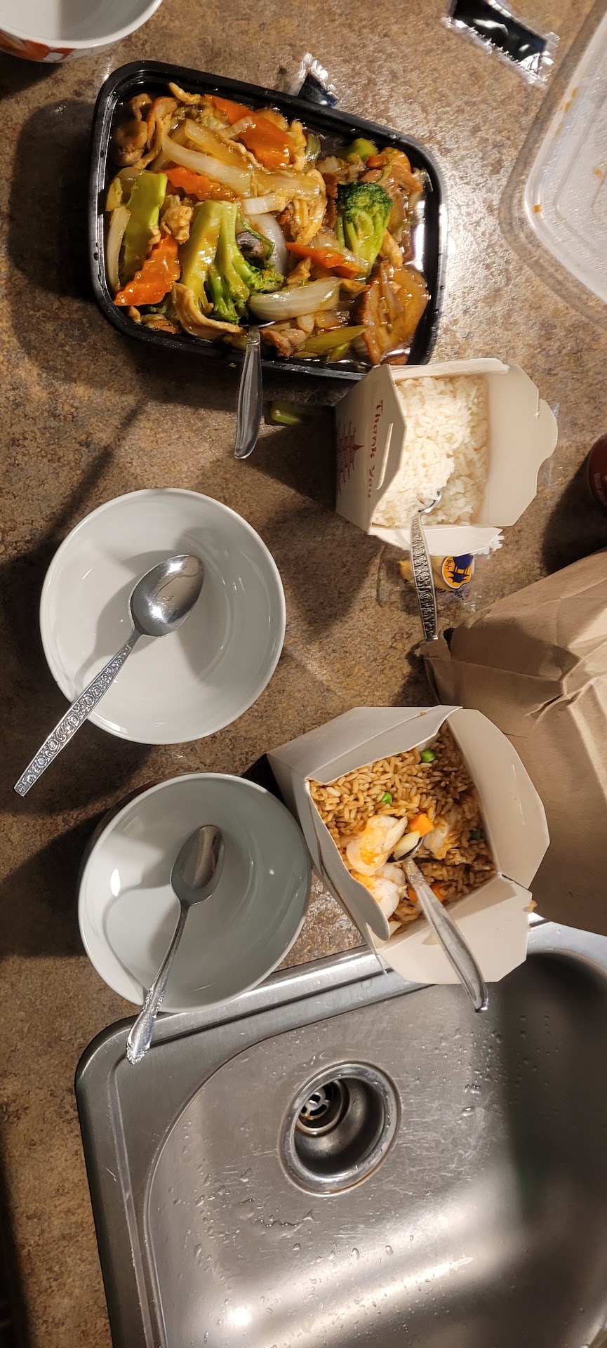 Ā Ā Ā Read moreWhile waiting for the order, flies were buzzing everywhere. Rude attitude from staff and it wasn't busy. Got my order home and my son found out immediately that the lids were not on tight! Half of some items were spilled onto everything else as well as on my son's hands getting burned. I tried to call and just let them know to make sure they put the lids on tight. I get yelled at, they couldn't speak any English, and nothing was accomplished, LEAST of all an apology. If you're going to run a business please know English and package your product securely. More than $50.00 spent. We...