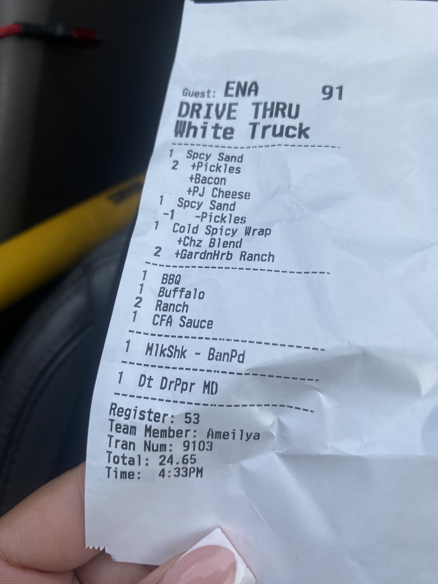 As far as my fries, they seemed old and were cold. I could not even enjoy them. How fitting. I should've just returned them when I thought about it in the moment. Sigh. Additionally, I've noticed that the last couple of times I've ordered, the fry quality has declined. They are hard, taste different, and the container is filled with broken waffle pieces at the bottom, so much so that a few weeks ago, I did return them for a new batch of fries.