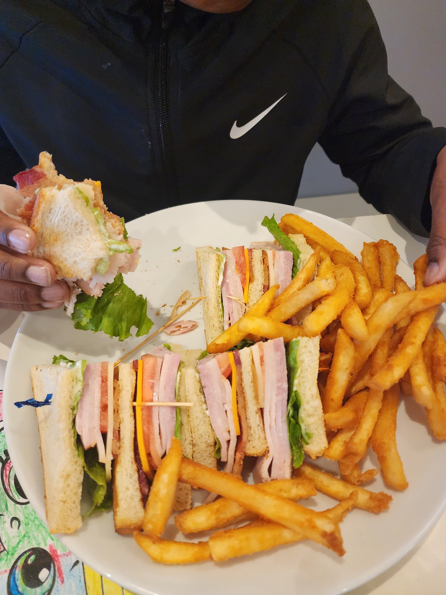 I was seated with my mom and my son at a nice sized clean table. Silverware was wrapped and clean, water glasses were full and clean and the coffee was hot. I placed an additional drink order for a coke. We then waited to order. And we waited. Out server couldn't place the order himself, he had to get the person training him to show him out to use the iPad. The ordering was easy and then we waited the normal amount of time you would expect to wait. Food was brought out by someone different who had no idea what we ordered and presented the two adults with food. One was correct but given to the wrong person, one was incorrect totally.