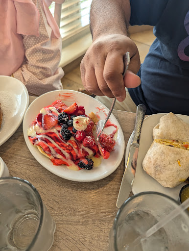 Beautiful atmosphere, warm, welcoming, clean and bright. The perfect breakfast place. The tables are far enough from each other where you don't feel as if you're too crammed together or hearing other people's conversations. The hosts are very kind, very attentive and know their food and options really well. They truly make you feel as though you are a guest in their home, a trait I look for in restaurant staff and seldom find it at restaurants anymore unfortunately so it was a relief to find it here! In addition to our server coming back to check on us, we had an additional 3 to 4 different restaurant hosts come to make sure everything was satisfactory. Every time we were greeted with a smile, very professional service, cheerful disposition and conversation was kept to the point to be respectful to our conversation.