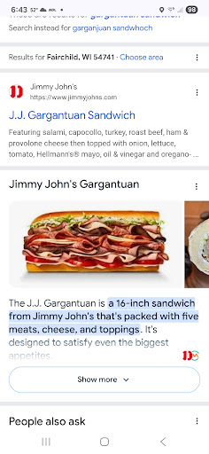 Read moreI placed an order for delivery on Sunday at around 11:30 in the morning. My order went out for delivery around 12:15 and I kept an eye out for it since I had marked to leave it at the door. It was marked delivered at 12:45, but was not left at my door. I figured it was accidentally left at a neighbors and walked up and down my street looking, but did not see any Jimmy John’s at any home on my street.