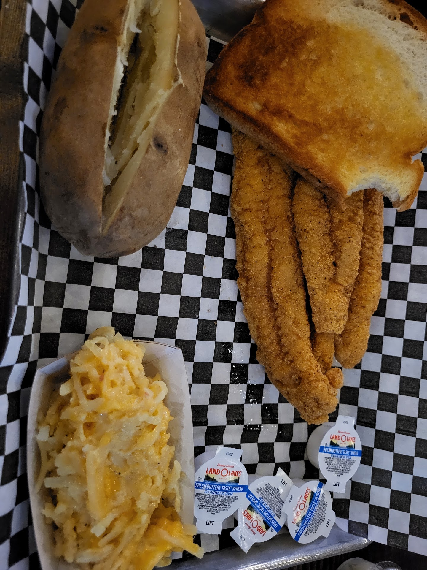 Just so you know, right off the bat, I do not like smoked meat, I love BBQ, but nowadays, BBQ must mean smoked. We have been here a few times. The first time, I ordered the mud slide and chicken strips, and everyone else ordered brisket and pork steak dinners. These last two plate dinners are supposed to come with Texas toast, but we never seem to get it. Brisket without bread, doesn't even sound right. That mud slide was the best damn mud slide I ever ordered. Chicken was okay. Most of us loved the food. All I could taste was smoke. But I got to say I would recommend the Brisket it wasn't that bad. Every time we come, we have to wait at least 30 min before being seated, no matter how many people. It's always crowded for the atmosphere. They have Ski brand pop. Now, last weekend, we came down, and they had empty tables while we waited 45 minutes to be seated. The mud slides now are just ok they don't come with the whipped cream anymore. I've had about 15 now since the first one. I ordered š fish from now on with toast because hushpuppies are just ok. I am pretty disappointed about the mud slides. What happened to the cream? That was the reason why I agreed to come back here. The last two times we were here, the tables were sticky and filthy. I asked for extra sour cream and butter every time for the baked potato, and not once did I get it. Most times, I wouldn't even get any sour cream. I always have to ask for it a few times before I get it. My advice is if you have to...