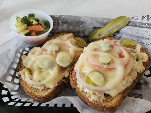 I ordered a tuna melt and chose the Israeli salad as the side. I asked for jalapenos to be added to the sandwich, and was disappointed when I got the receipt to find that they charged a dollar for the additional topping. Seemed steep considering there were about 8-10 jalapeno slices. The sandwich was pretty good, but would have been better if it had been heated through -- some of the thicker parts were still cool in the middle. The bread and other toppings were very good, and it seemed like a sizable portion of tuna salad was on the sandwich. When it came to the Israeli salad, I wish I had more than what was in that little cup! It was very good and so fresh! I could have had a bowl of that stuff for lunch alone! :)