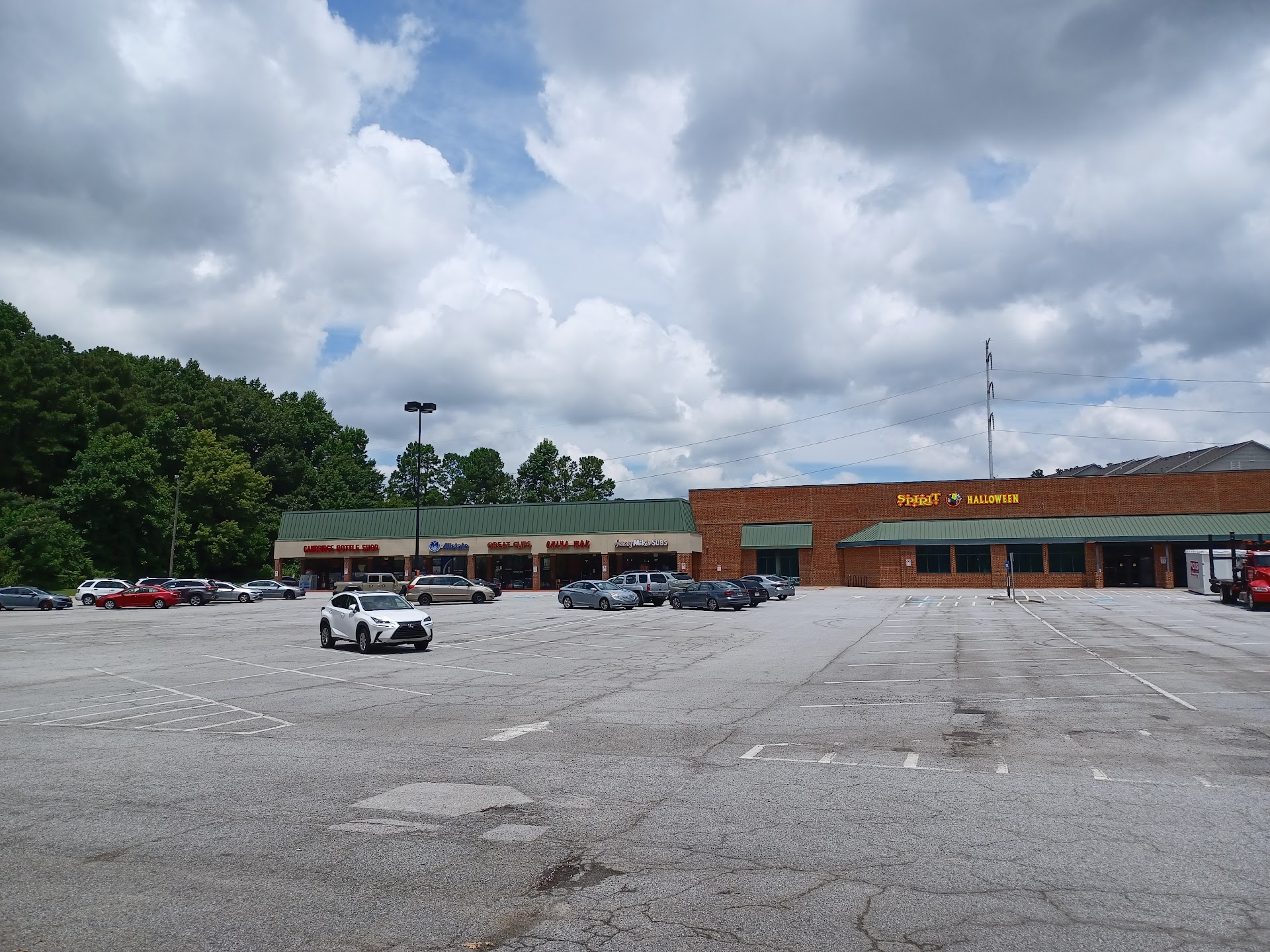 Stores here are: Cambridge Bottle Shop, Allstate, Great Clips, China Wok, Jersey Mike's Sub, Dollar Tree, Nail Salon, Mexican restaurant and Starbucks. Plenty of parking available as there is little traffic here.