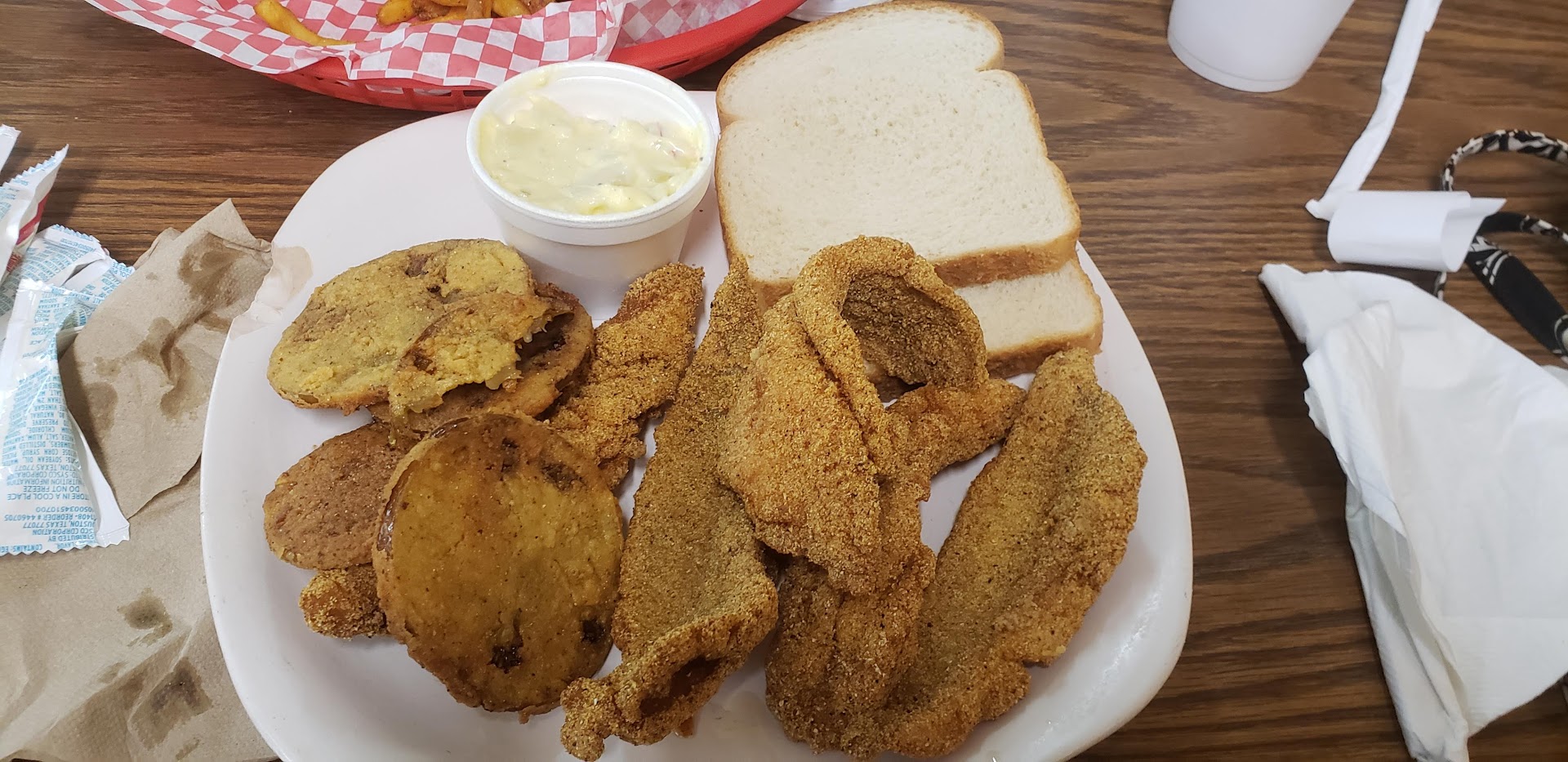 Read moreNo meatloaf here! This is not your typical Diner, put more of a chicken and fish place! While they do have hamburgers, the menu is filled with fried foods from Catfish and trout, to Hush Puppies, chicken, Etc. They do have gumbo and my catfish was delicious, even though I went there looking for meatloaf, mashed potatoes, and green beans! The outside looks dismal but the interior is beautiful bright and fresh and clean! The only vegetable to be found is coleslaw! I also got fried oysters which were very good even though I normally do not...